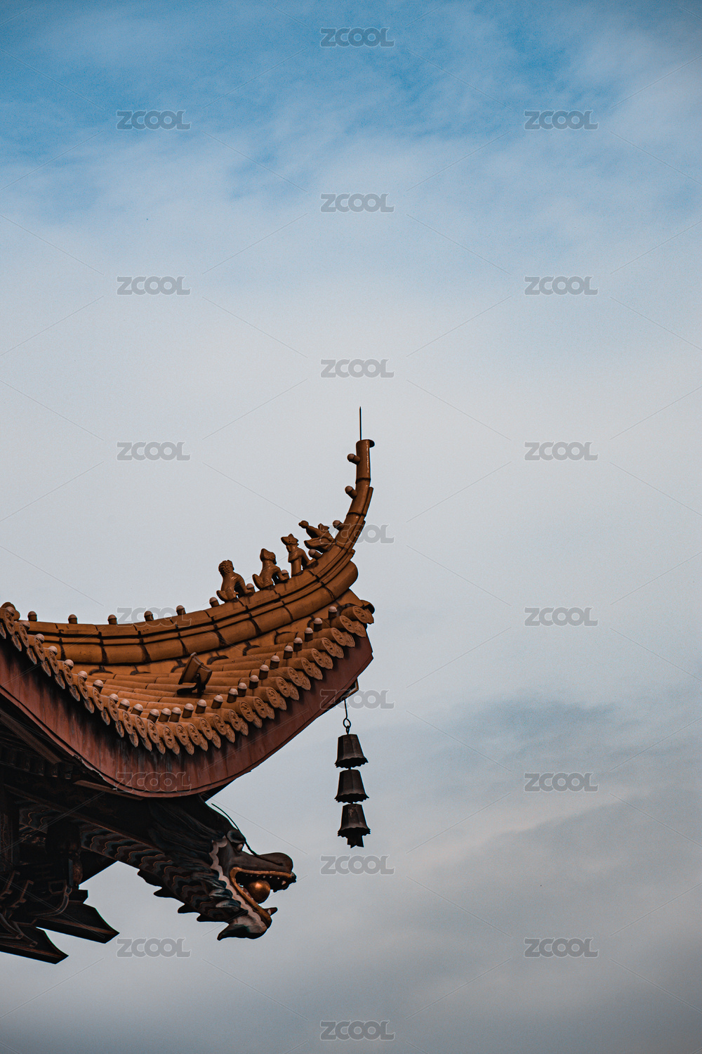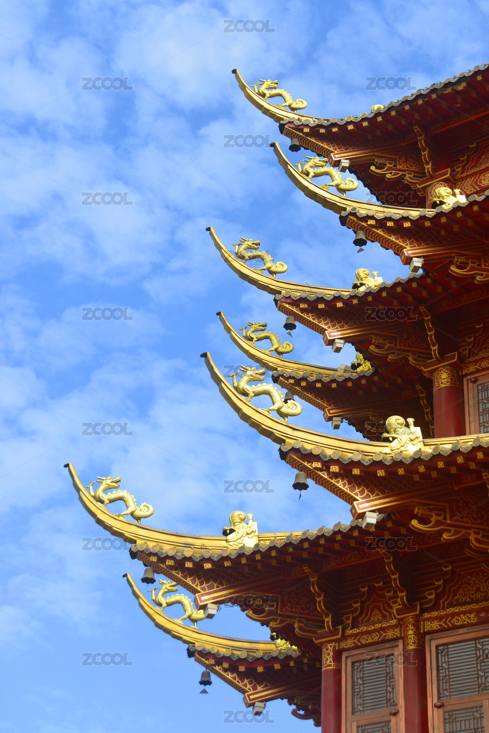 中国四川成都龙潭水乡龙潭阁金龙飞檐