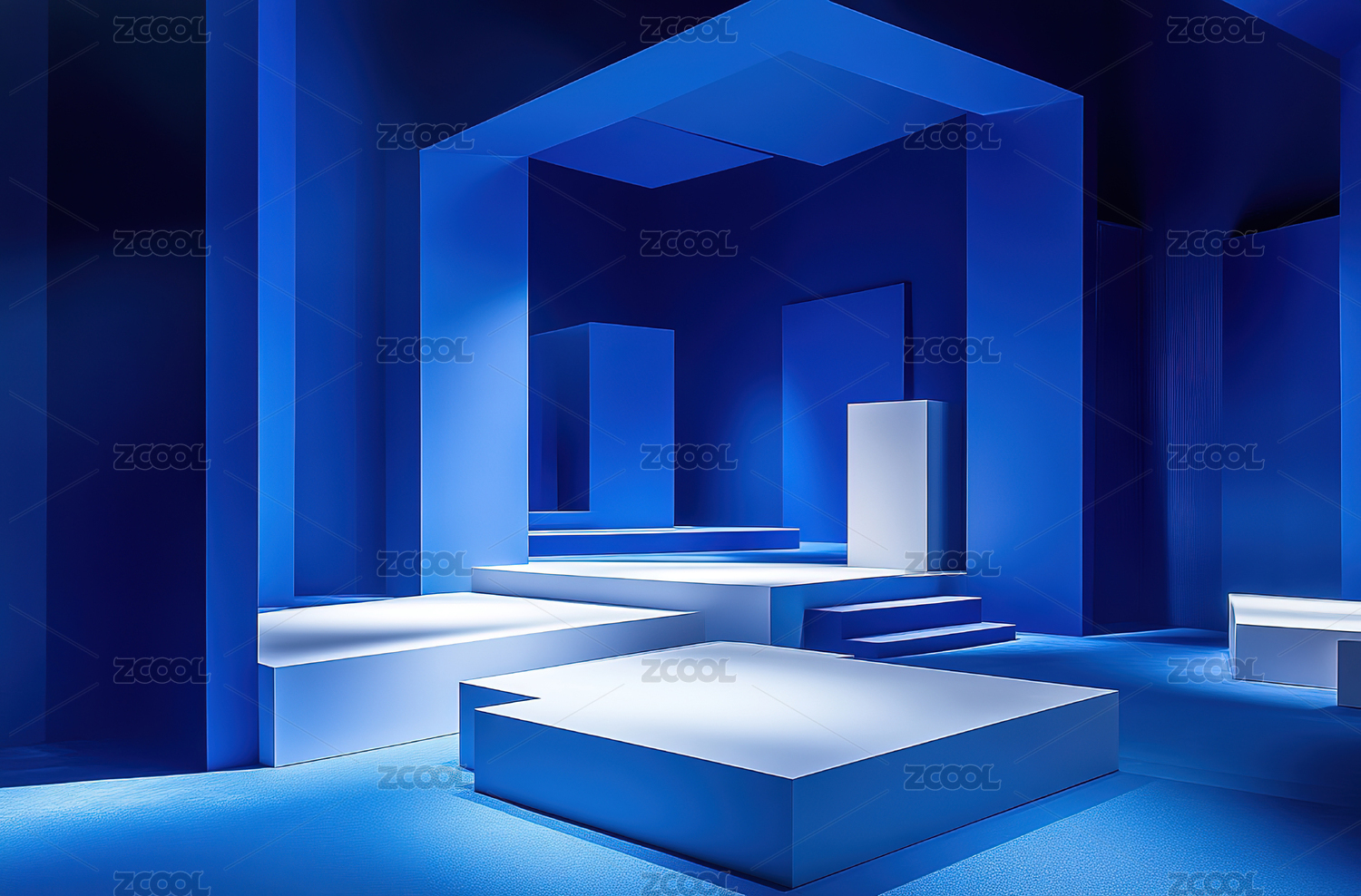 蓝色几何空间光影效果
