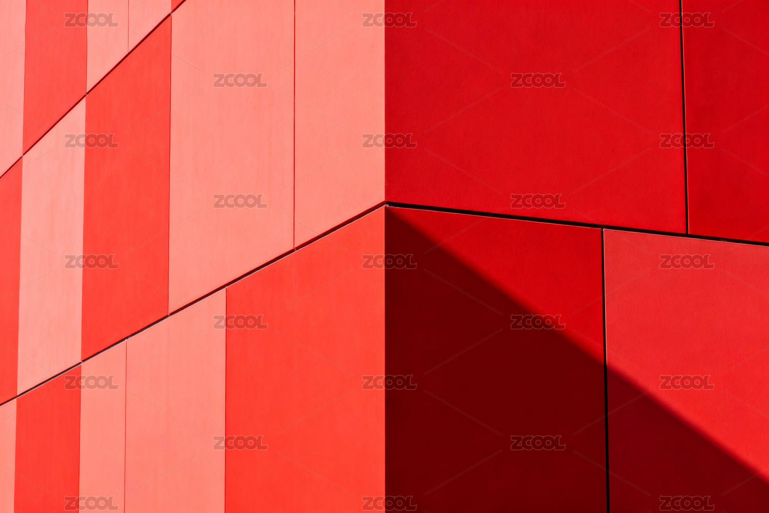 红色几何建筑外墙特写