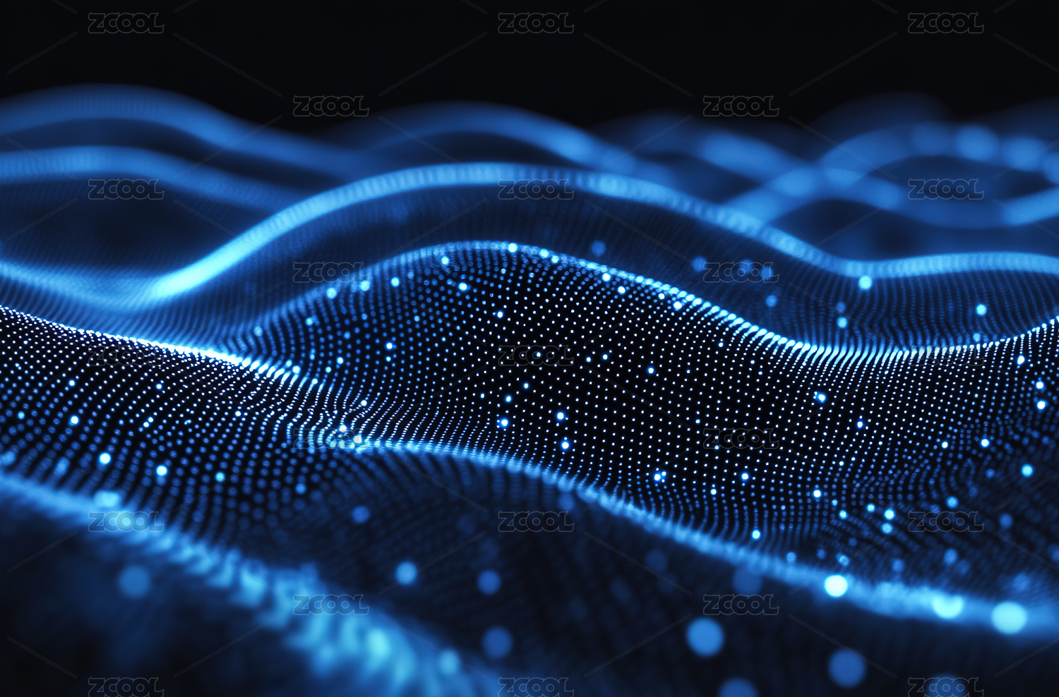 抽象,蓝色,波浪,曲线,空间,科技,光线,光点,信息,数据