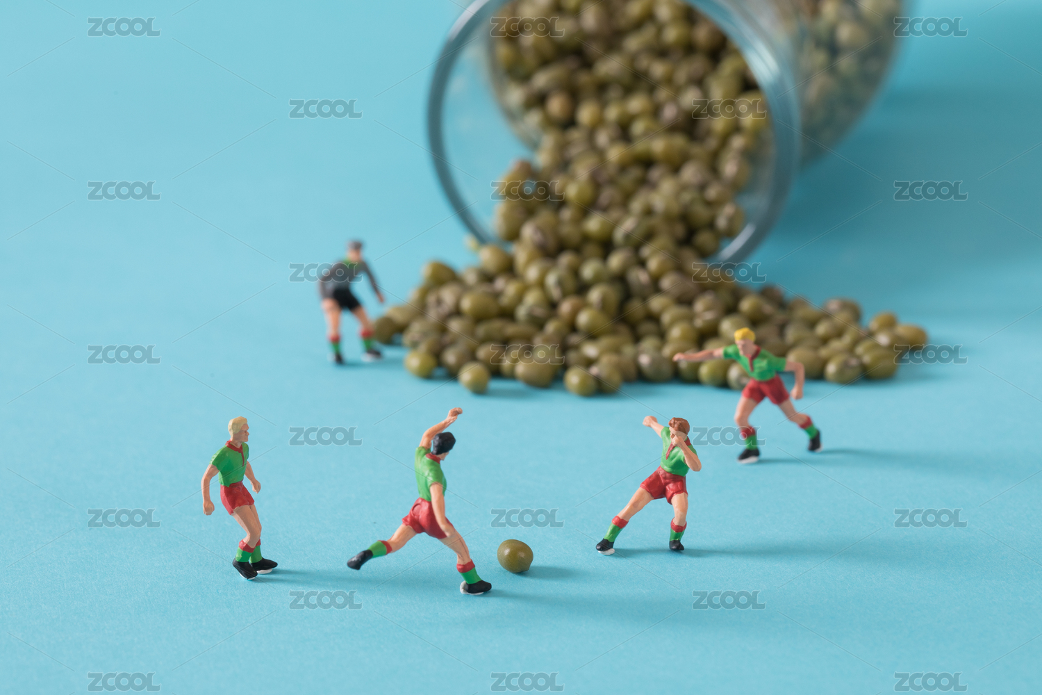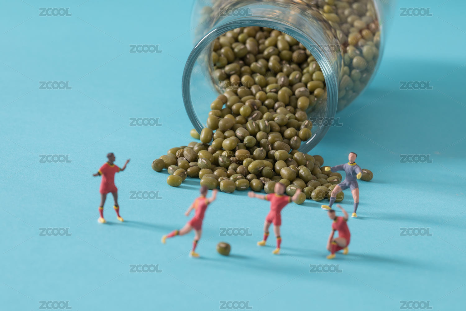绿豆和微缩小人的创意摄影,关于浪费食物