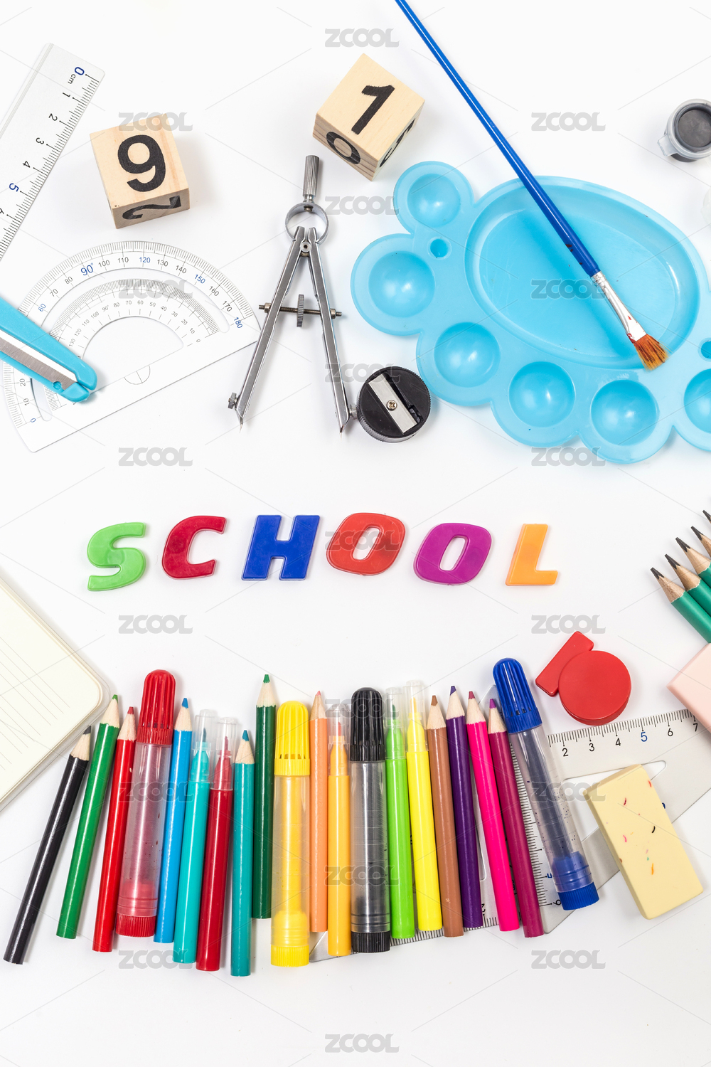 桌子上多种类型的学习文具