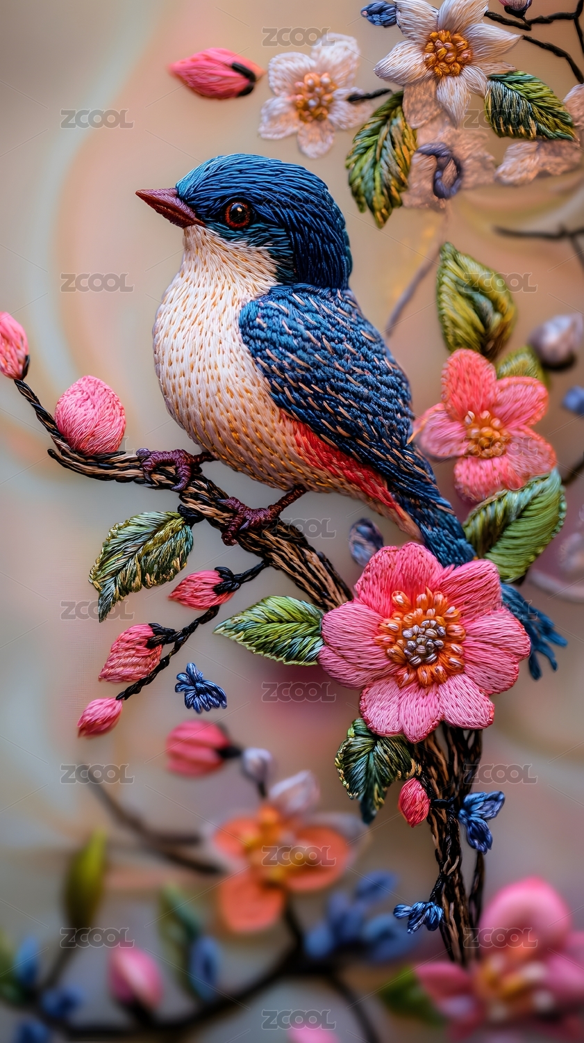 花鸟,鸟,燕子,花,花朵,绽放,花草,春天,拼合,多彩