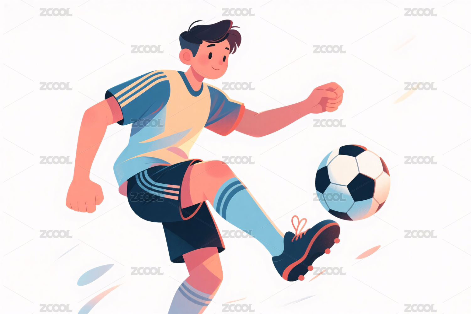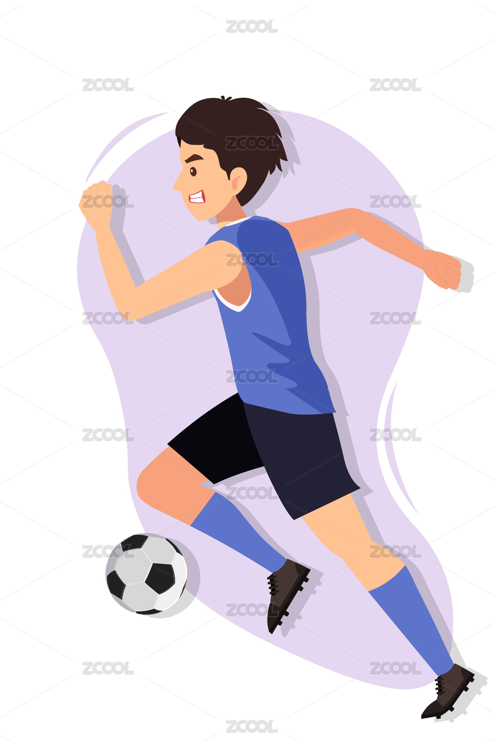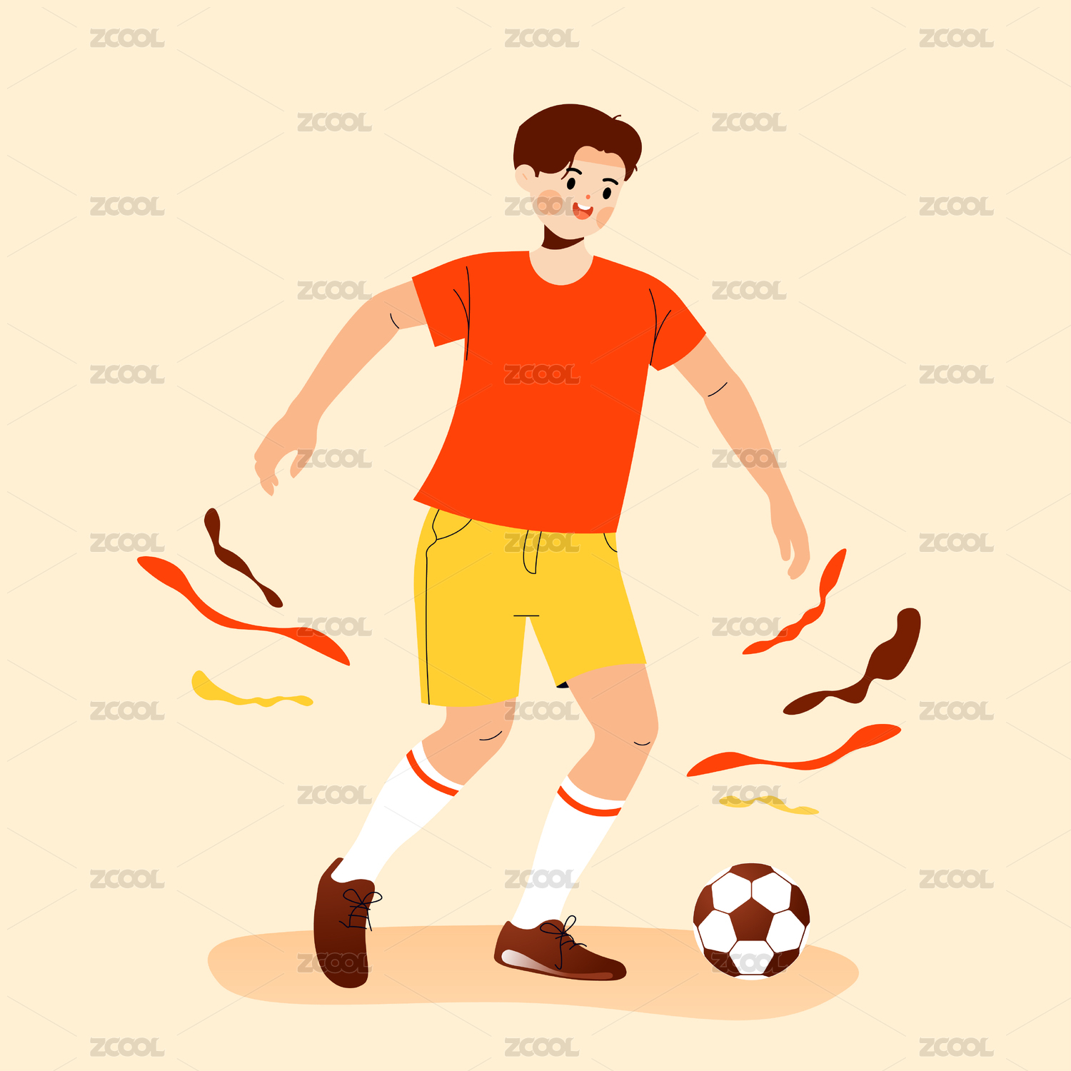 手绘奋力奔跑运动锻炼健身踢足球的男孩插画