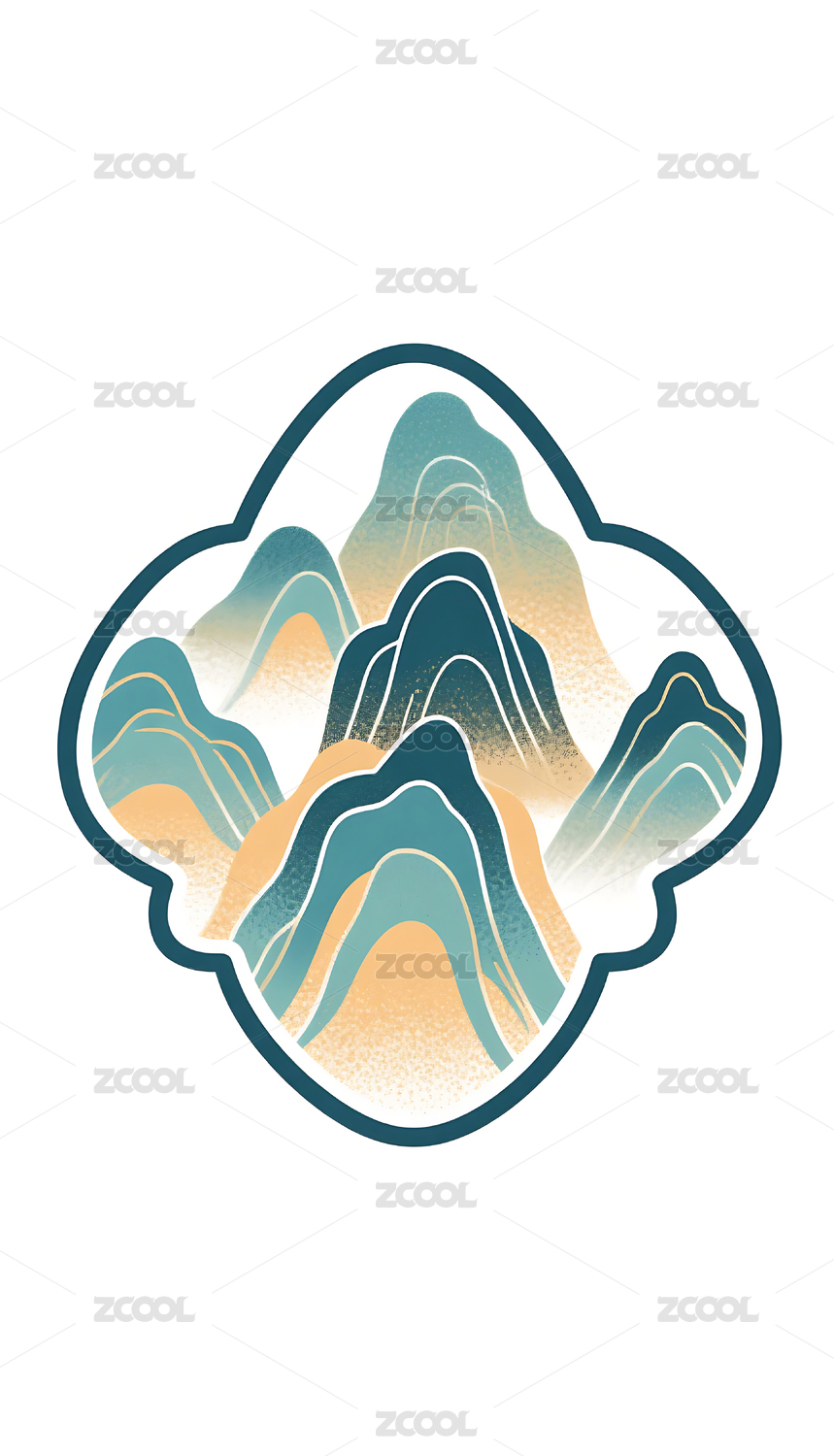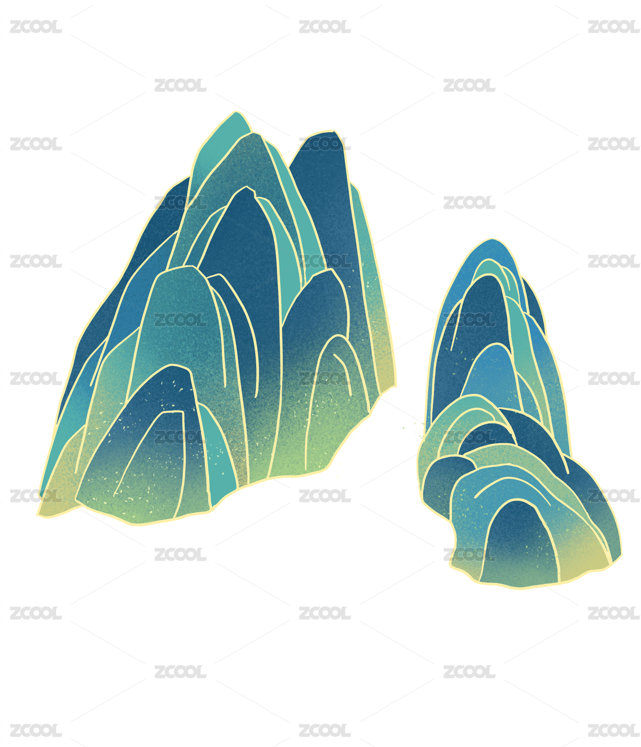 中式,山脉,山川,国潮,国风,插画,绿色,祥云,渐变,线条