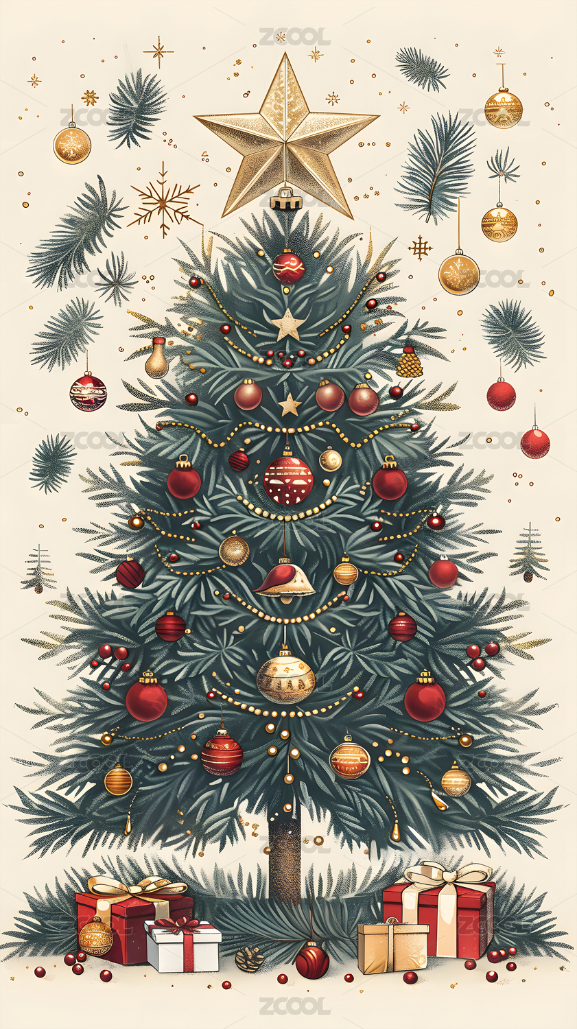 手绘矢量圣诞元素圣诞树圣诞礼盒