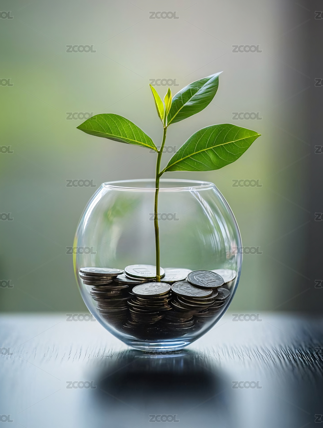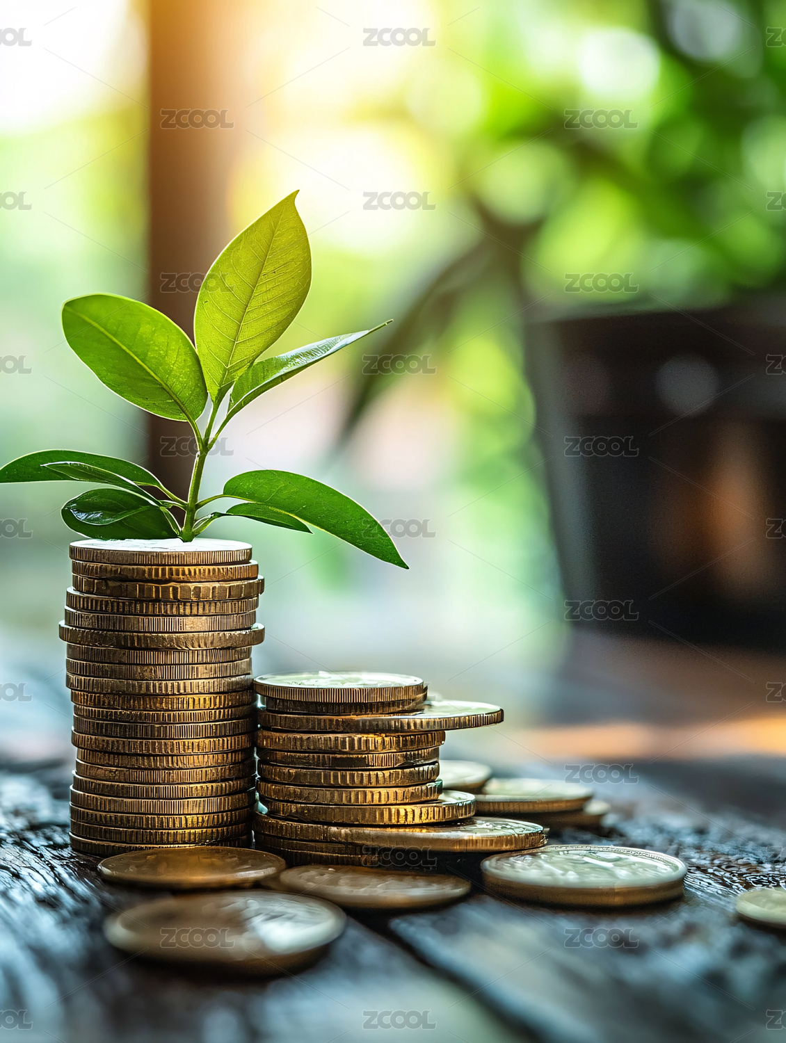 硬币与绿植