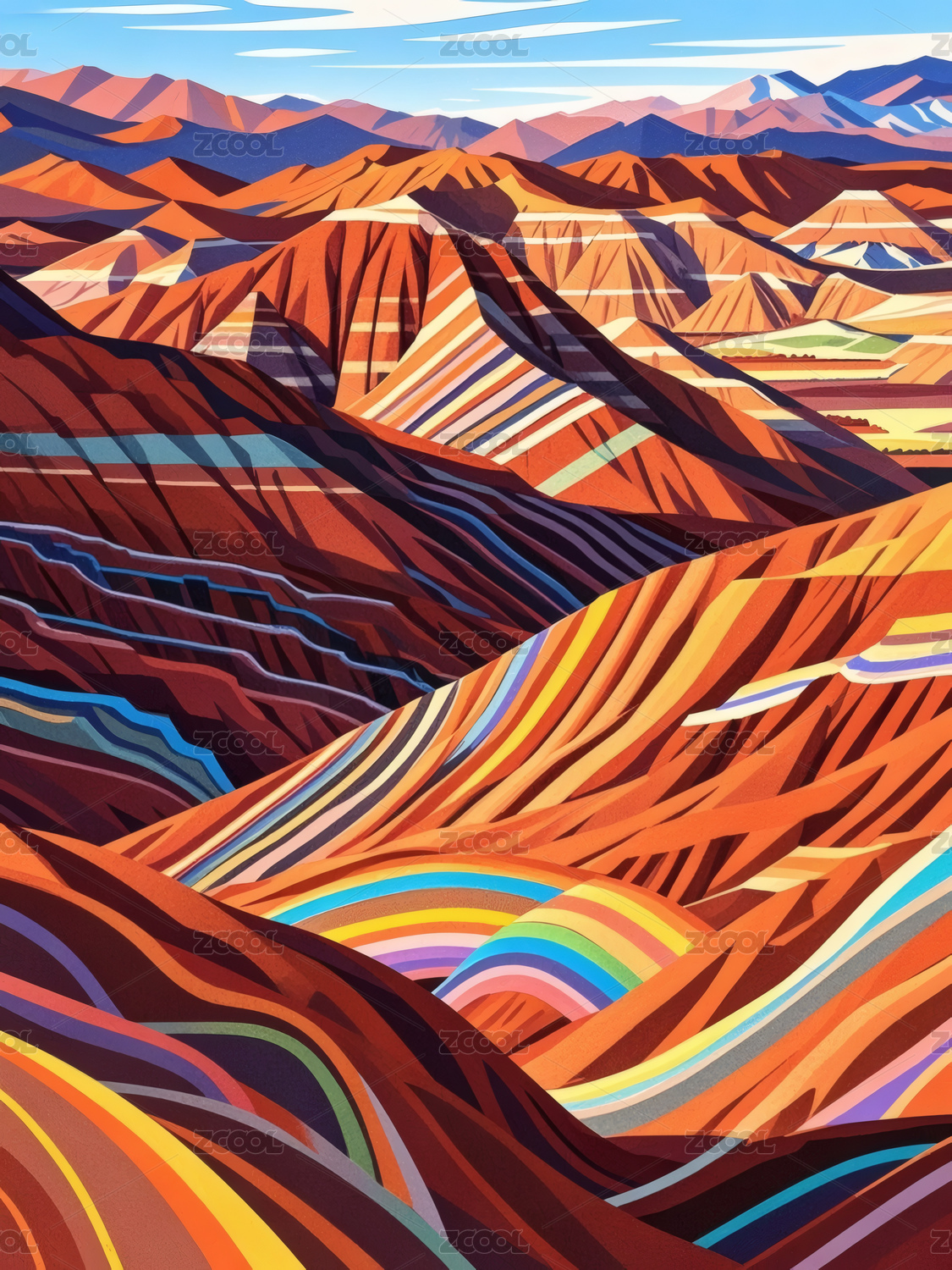 AIGC202404,自然,背景,插图,插画,手绘,山川,山丘,山坡,地貌