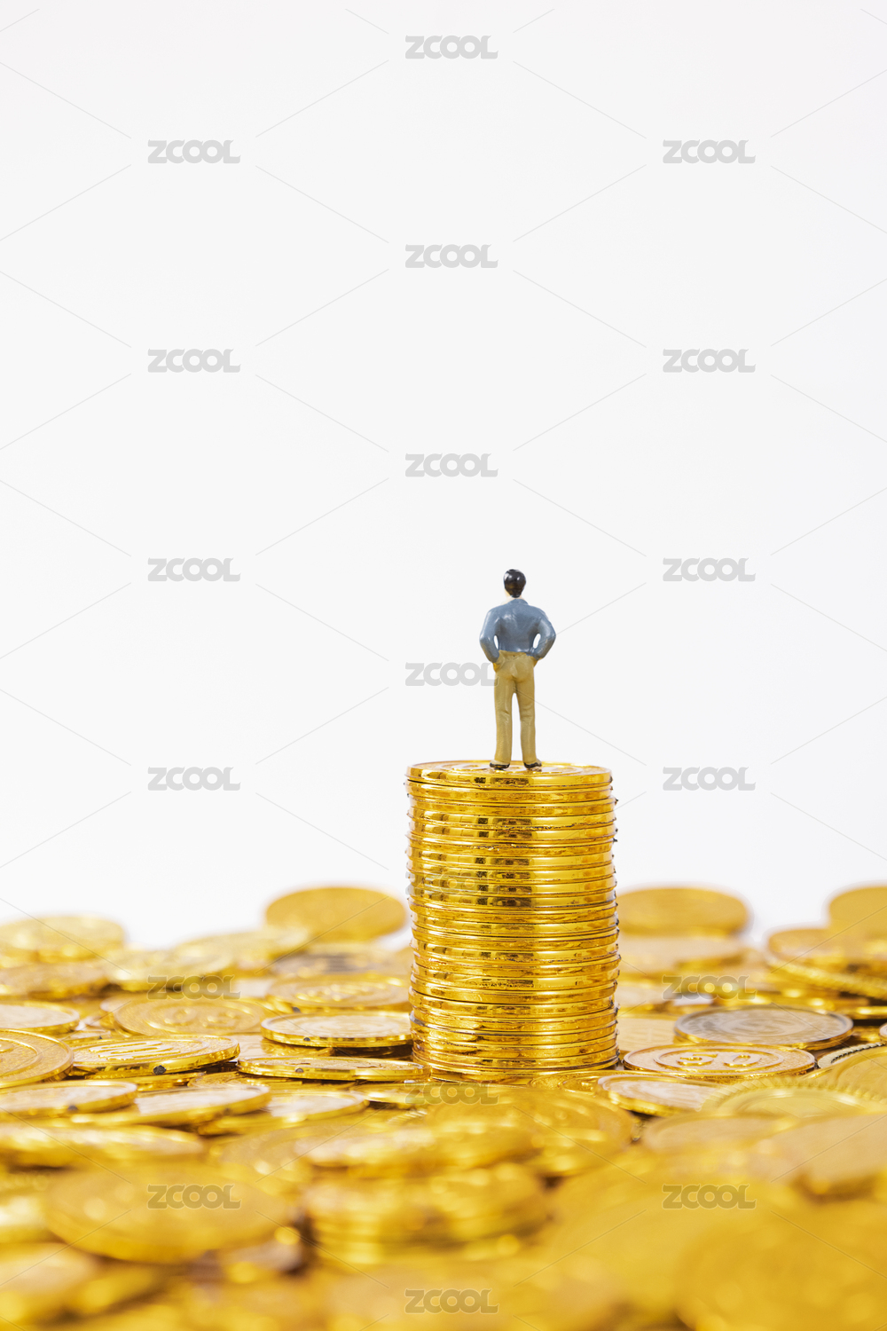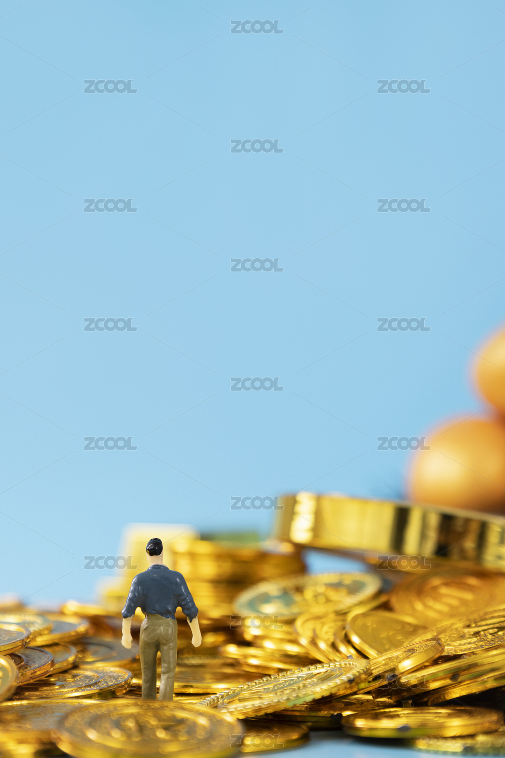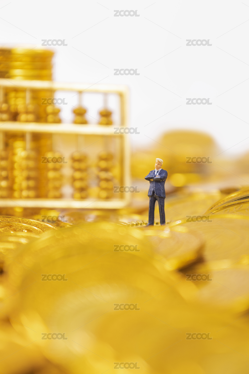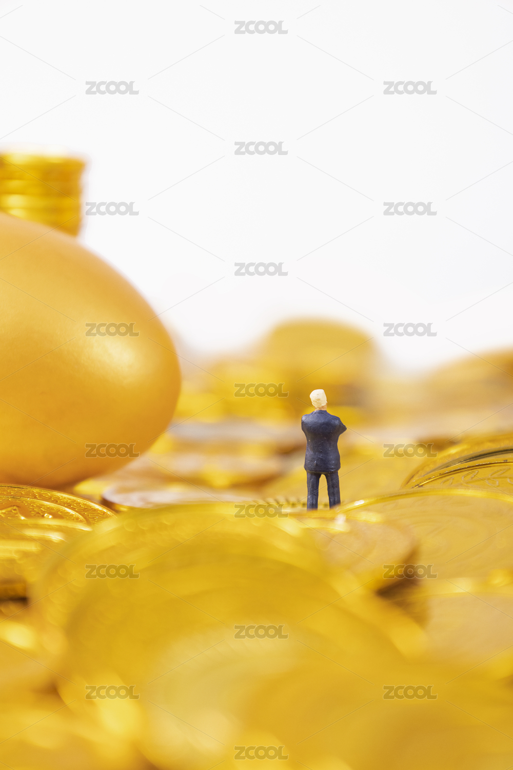 商务人士微缩创意金币背景