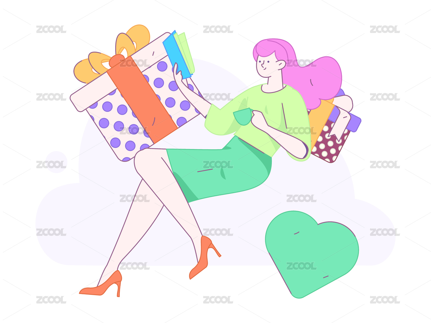 橙绿少女时尚肖像大头照矢量扁平化设计背景