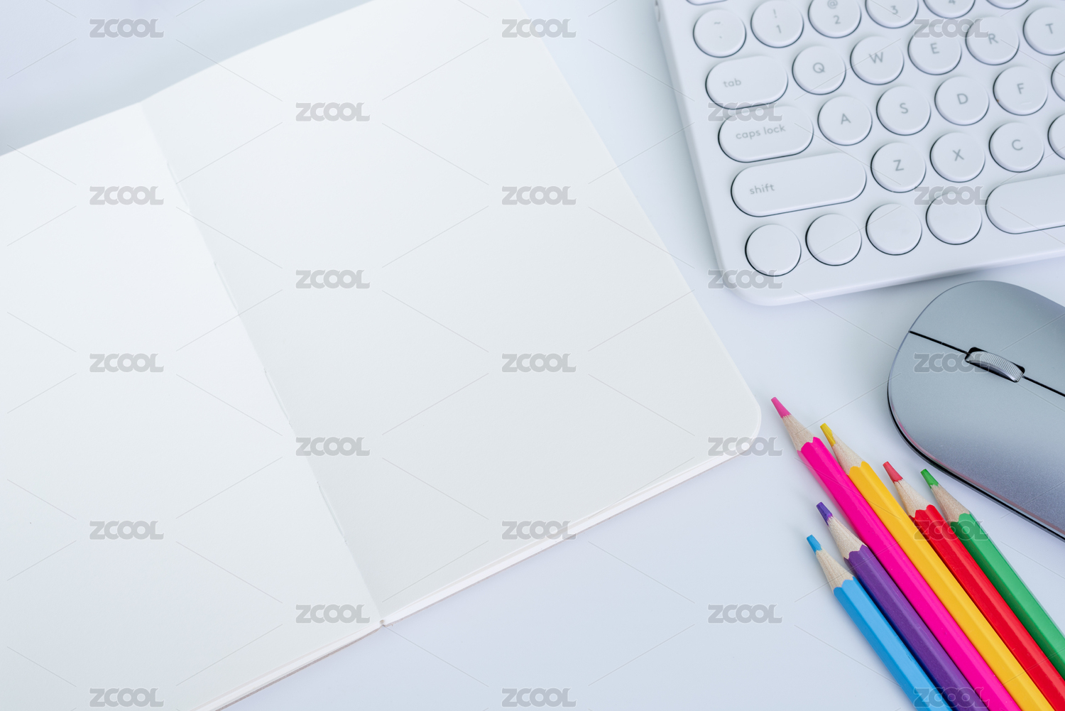 工作,办公桌,笔记本,鼠标,键盘,铅笔,彩铅,文具,笔,学习