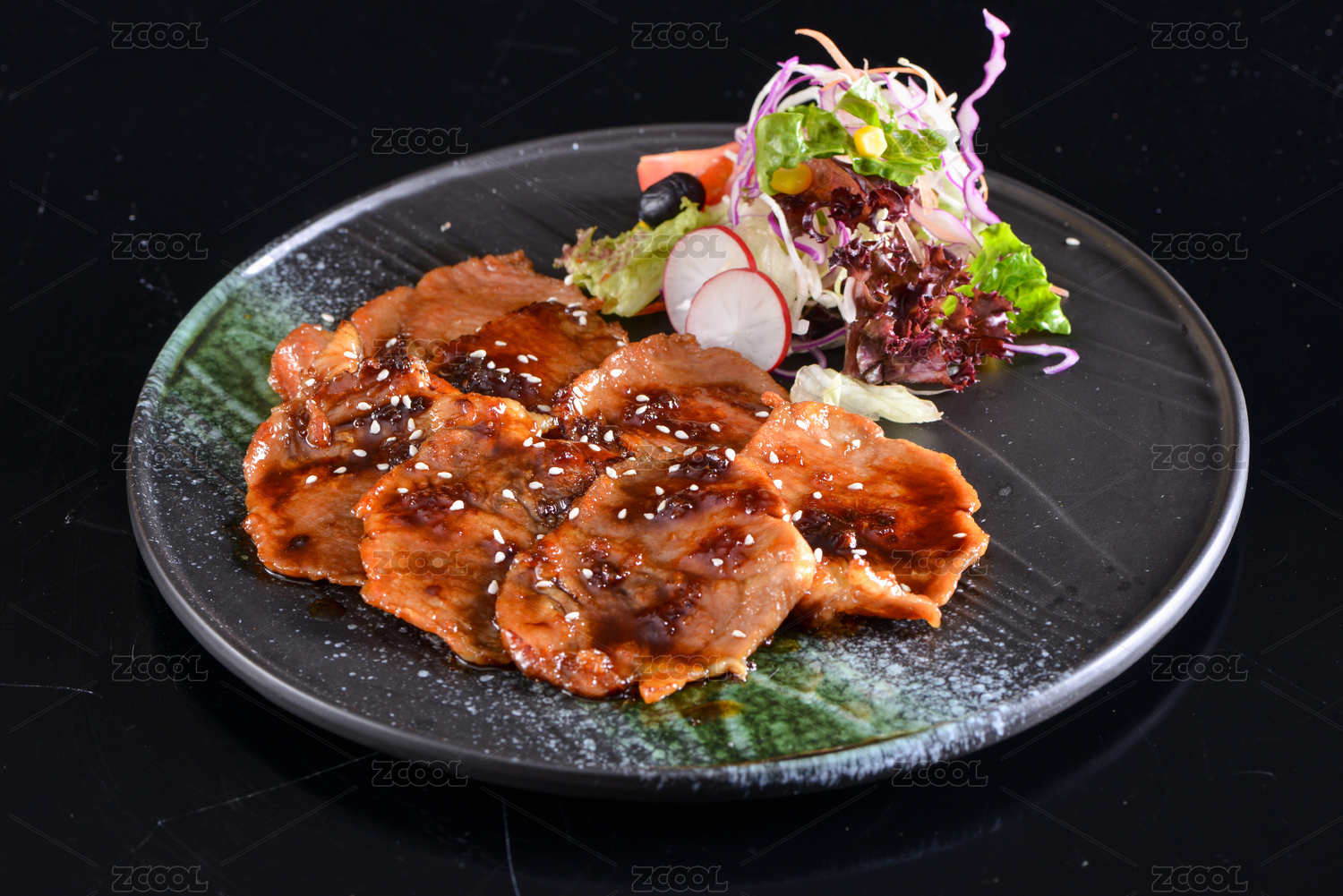 棕色木纹桌面上放着一份凉拌猪耳朵丝