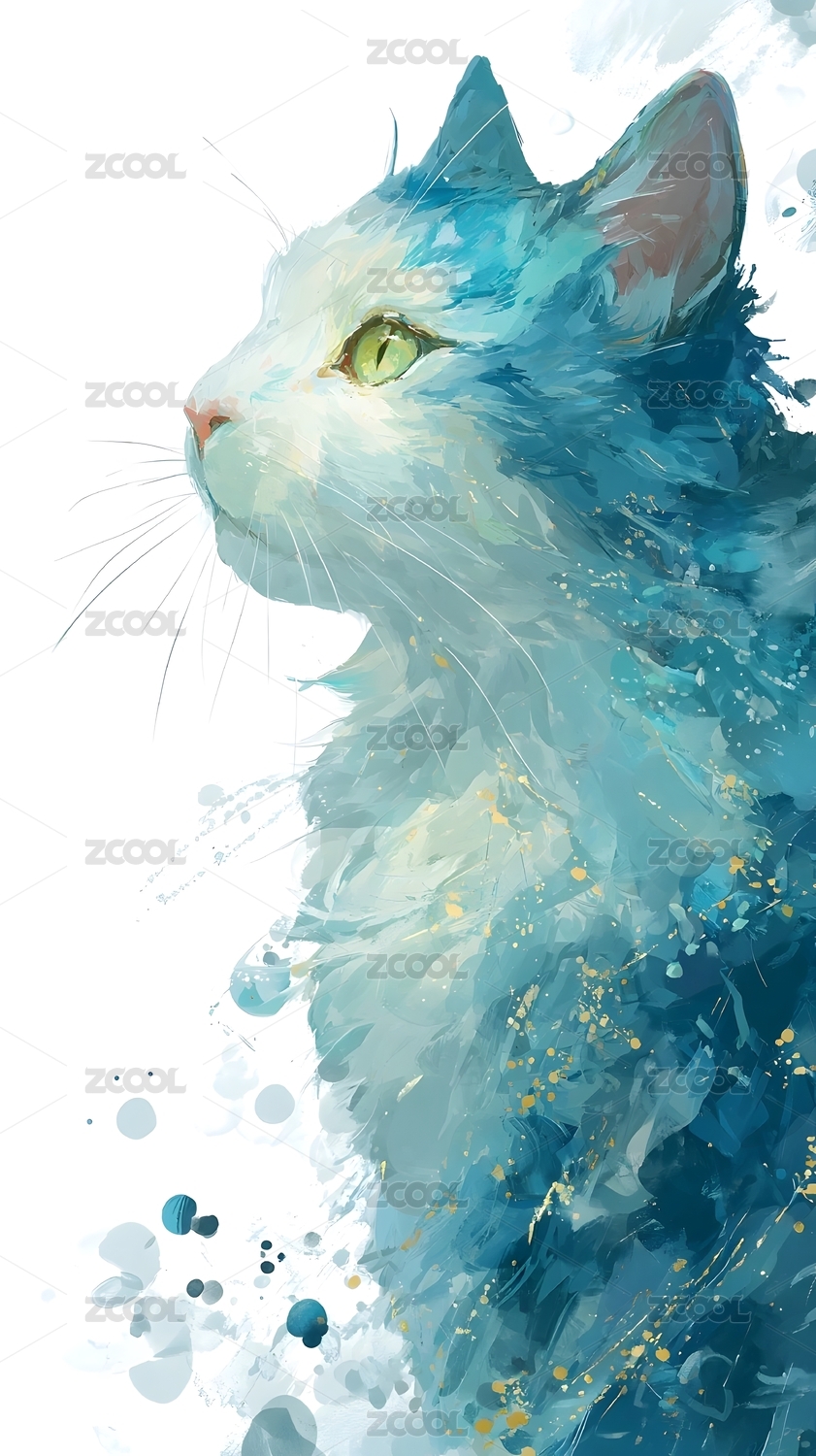 插画,水墨,工笔,国画,侧面,特写,猫,写意,可爱,传统