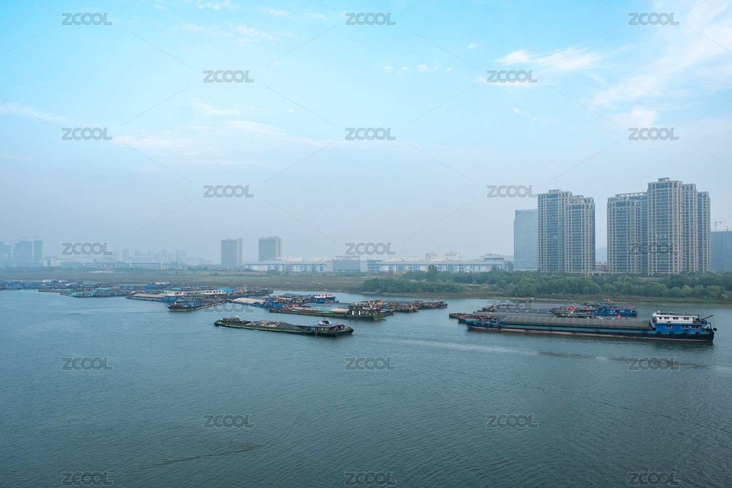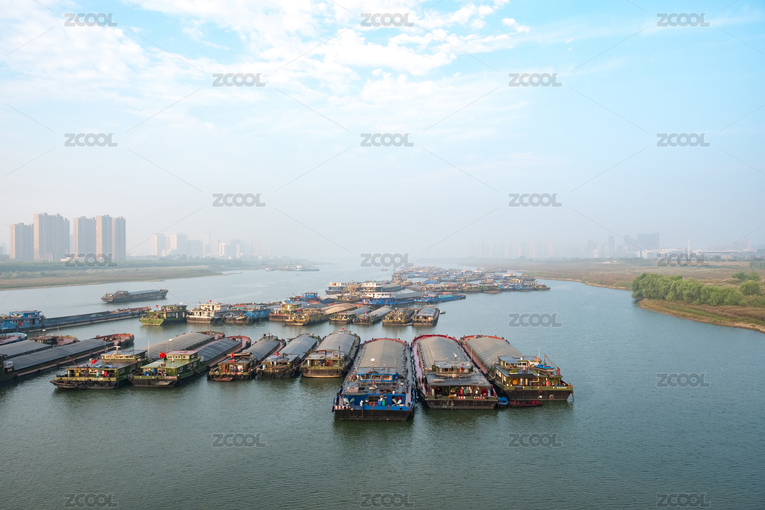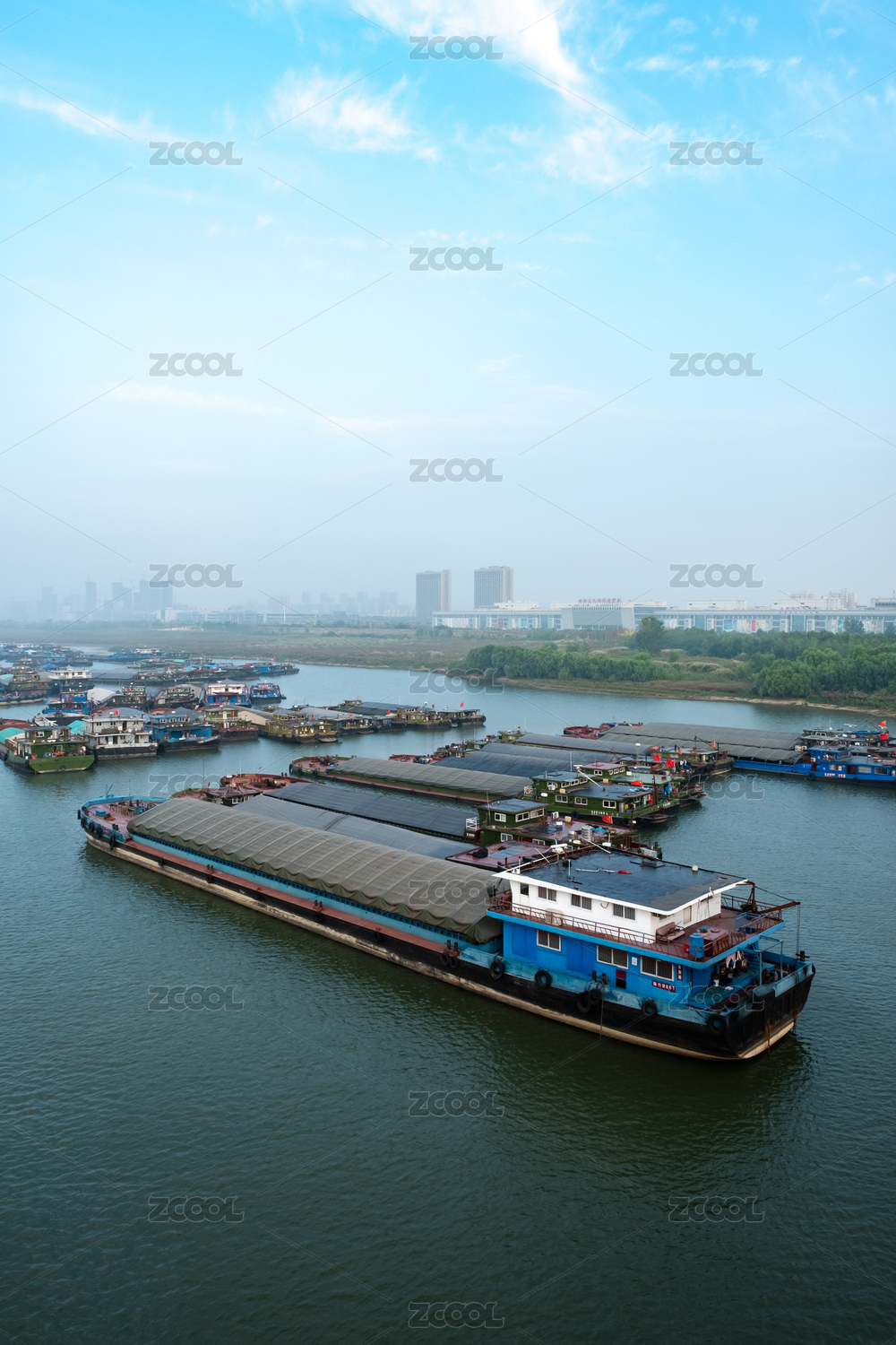 航拍南京长江河道中的货船