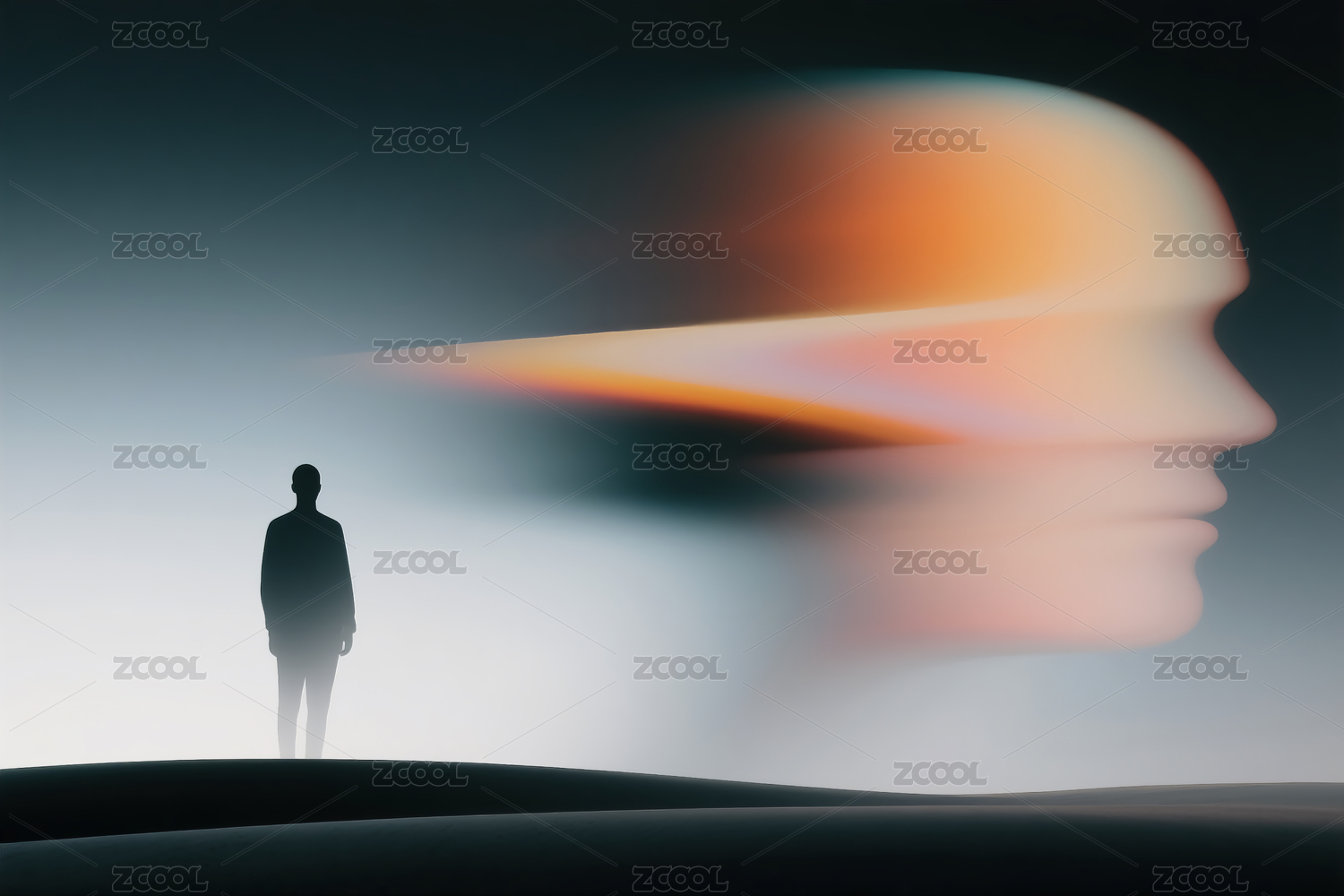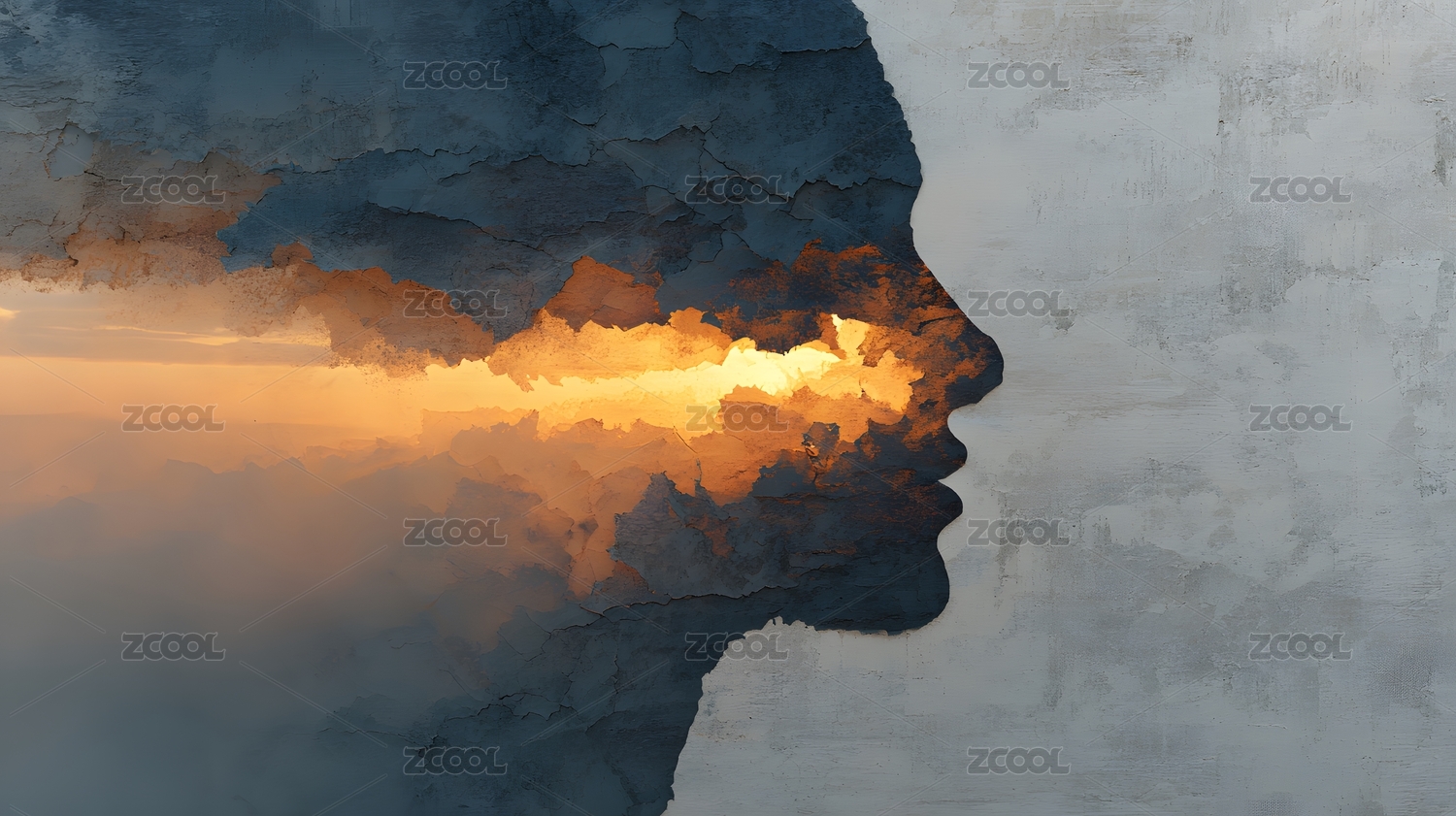 人面轮廓中透出的天空景象