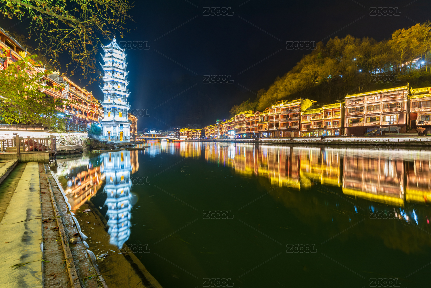 中国湖南湘西凤凰古城漂亮的夜景风光
