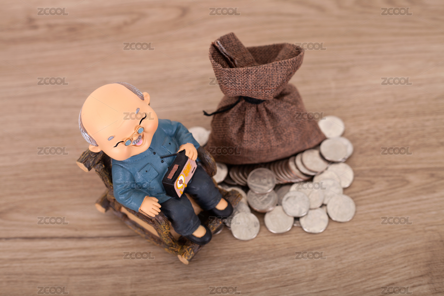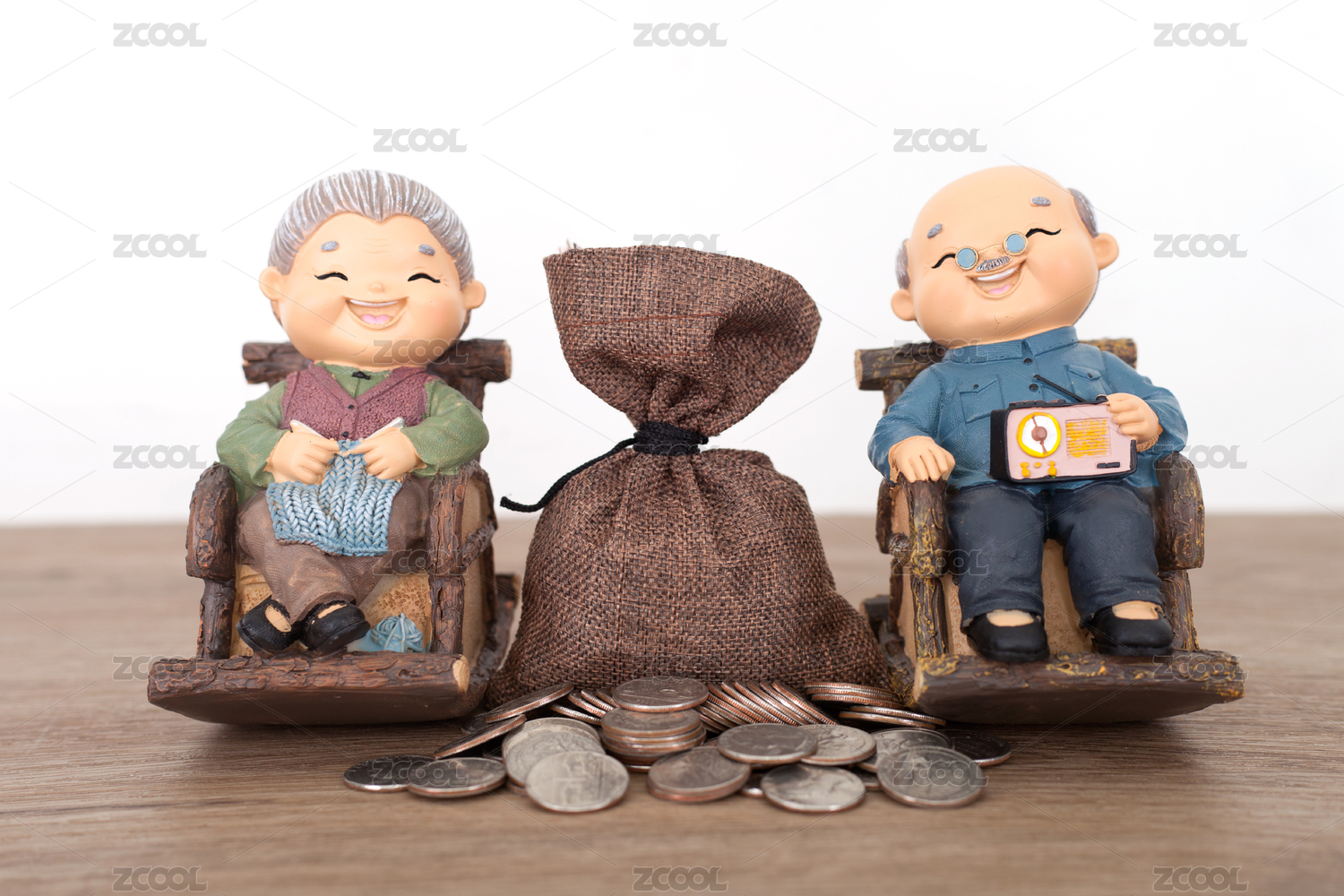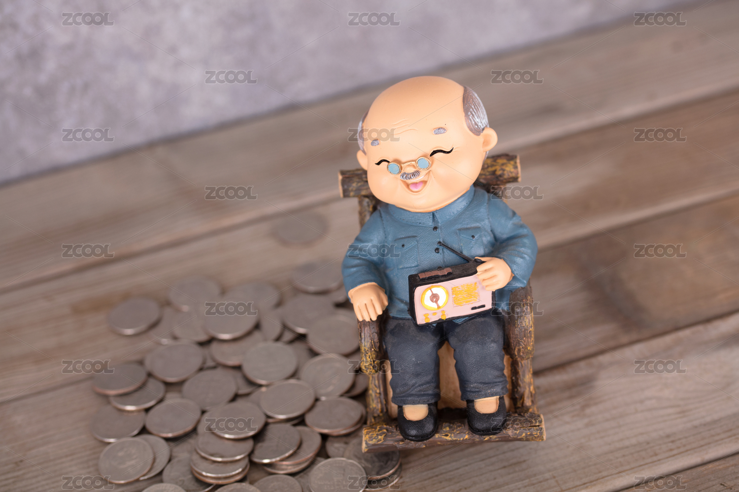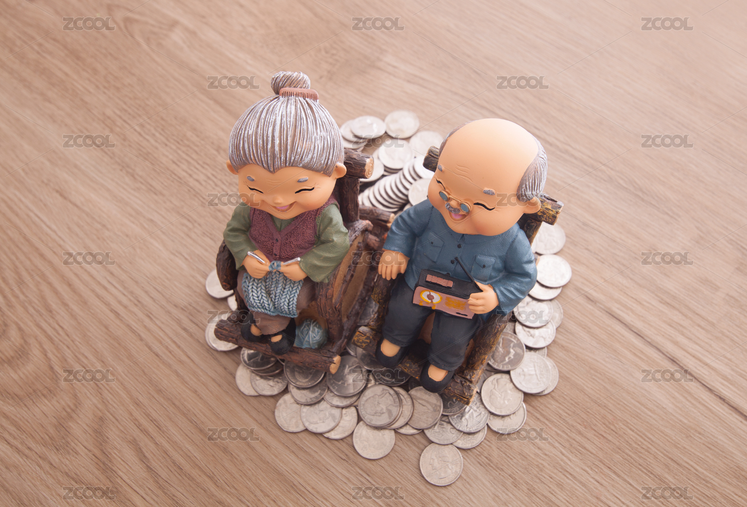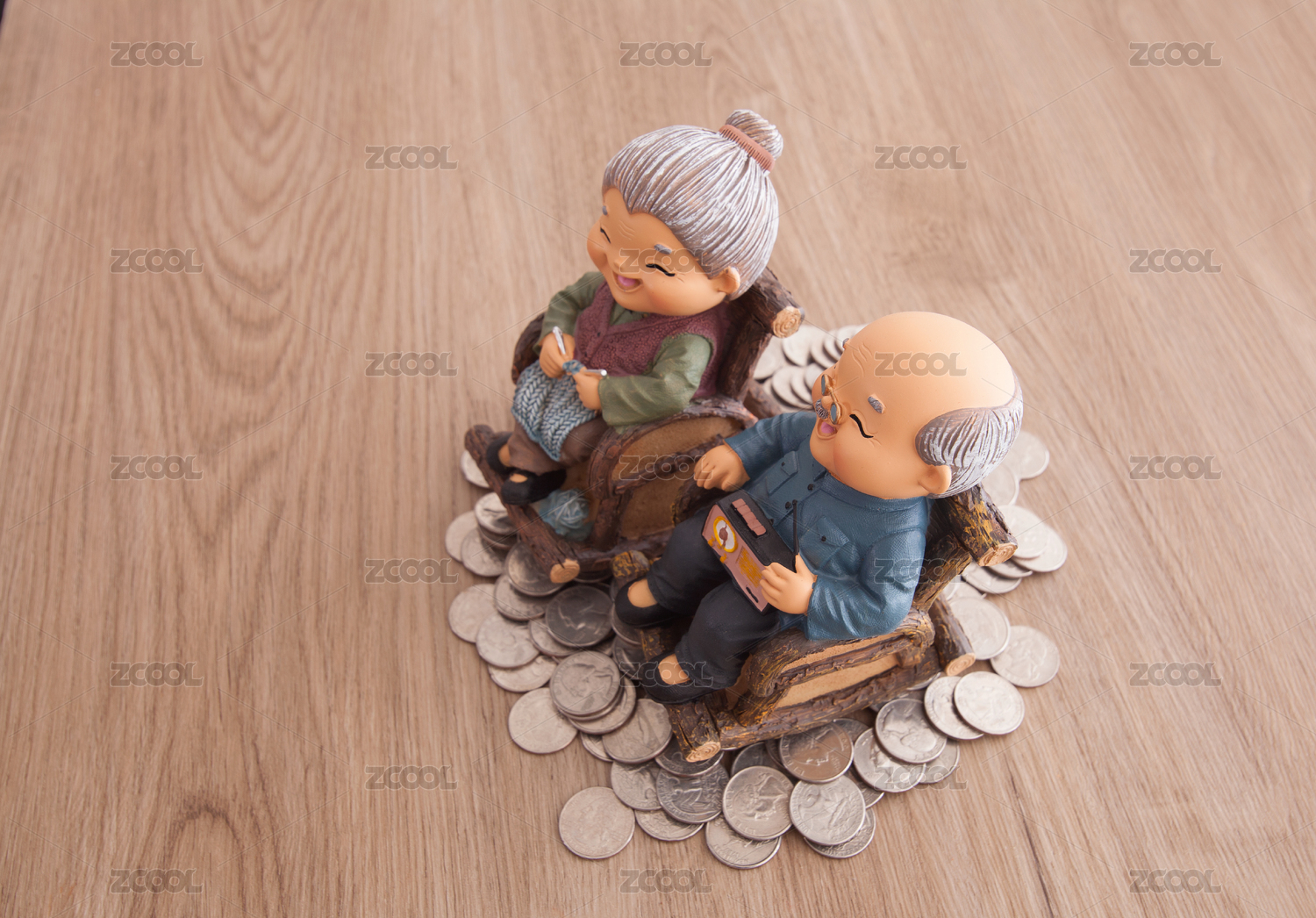 老婆婆模型和老爷爷模型在一堆美元硬币上