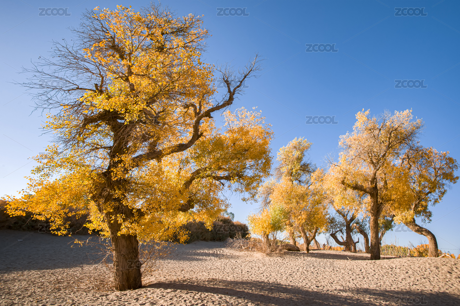 蓝天背景的胡杨林