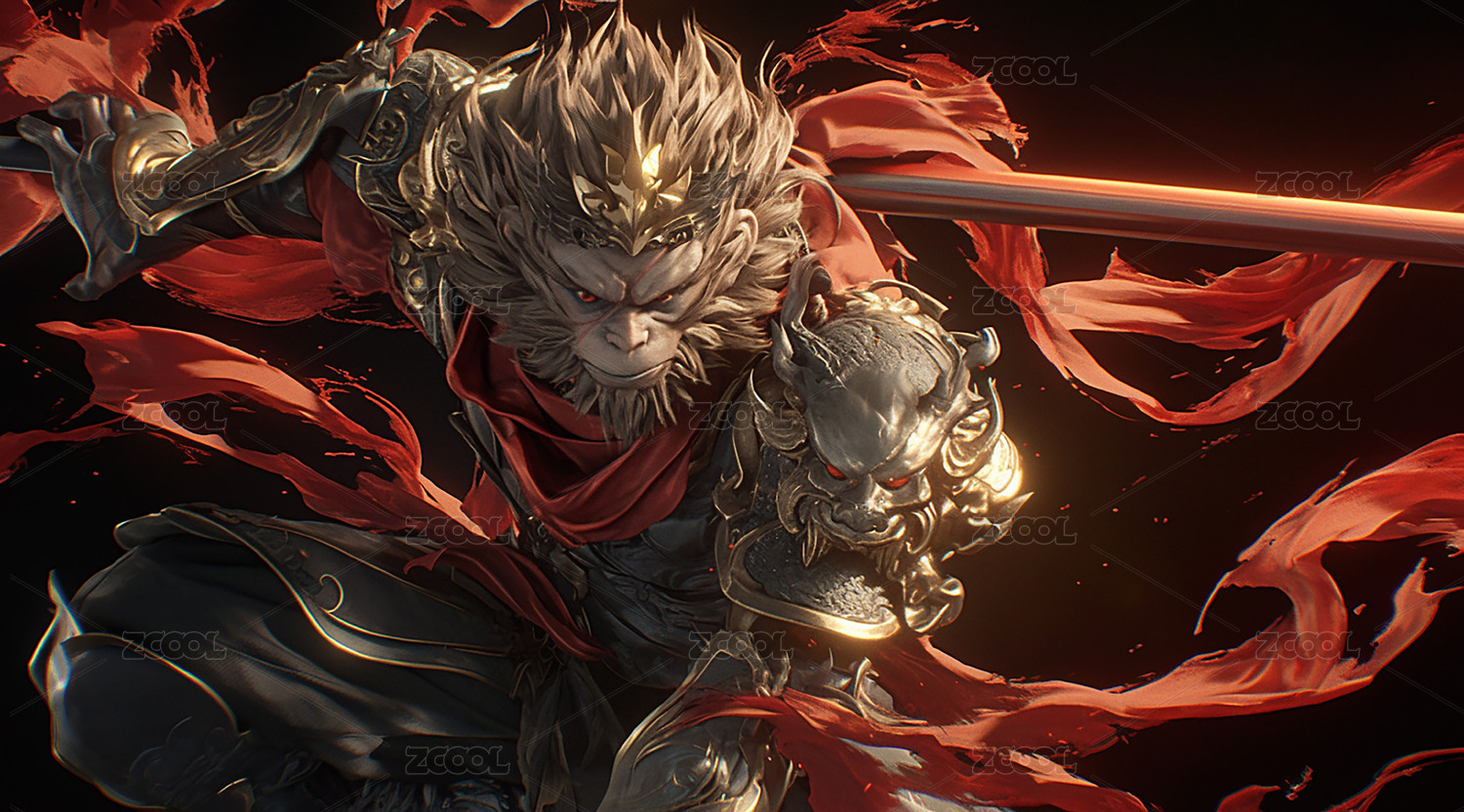 云雾,山脉,祥云,孙悟空,唐僧,猪八戒,水墨风,原画风,新国潮风,AIGC202407