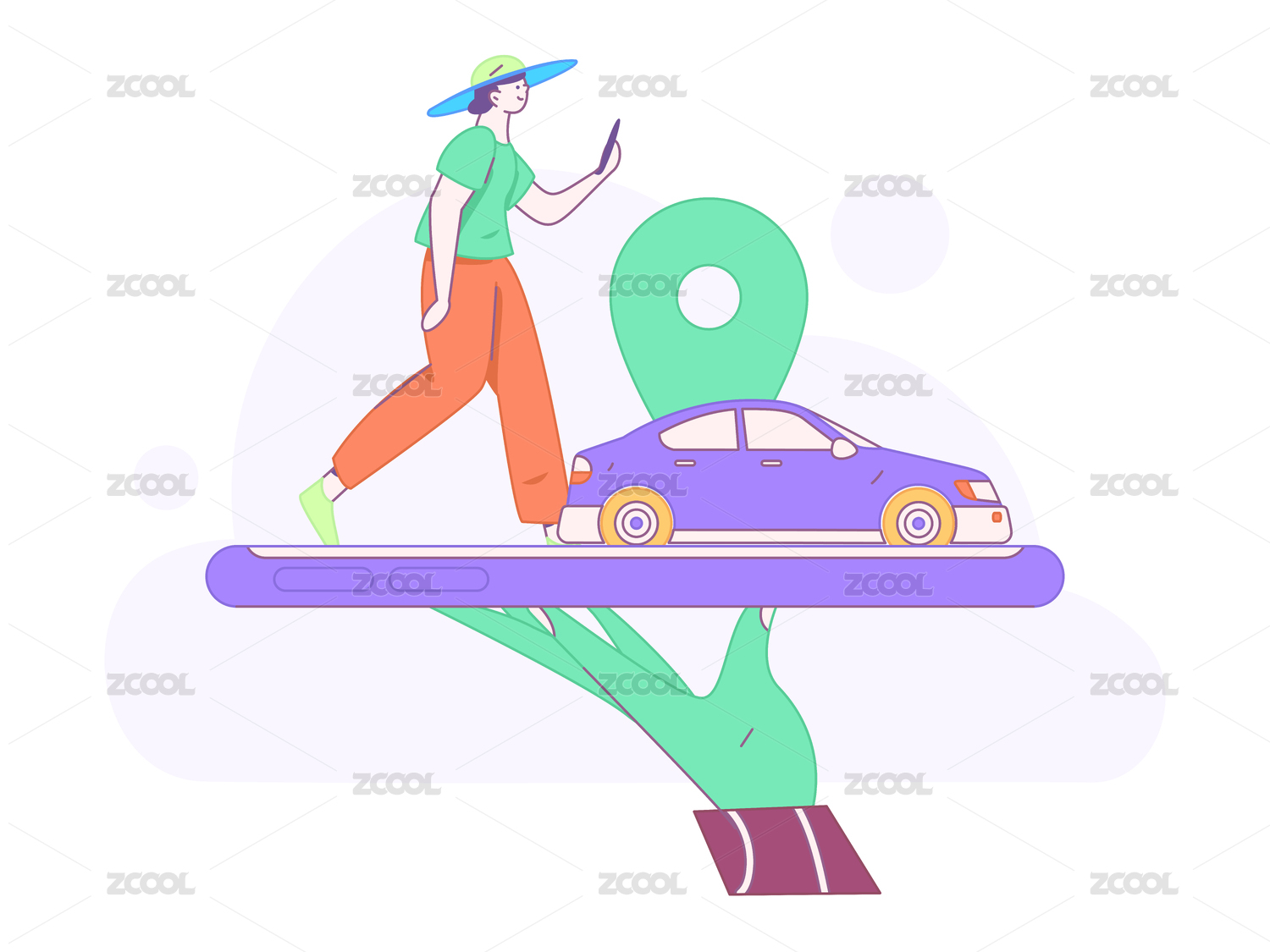 白领打车出行扁平矢量概念运营插画
