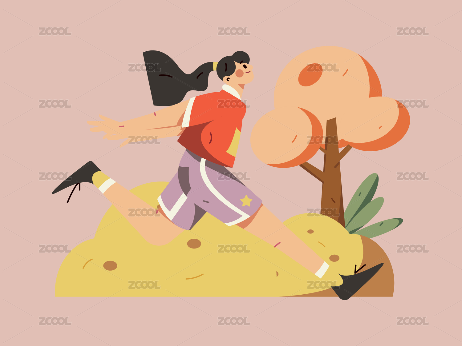 锻炼健康跑步的人物矢量互联网运营手绘插画
