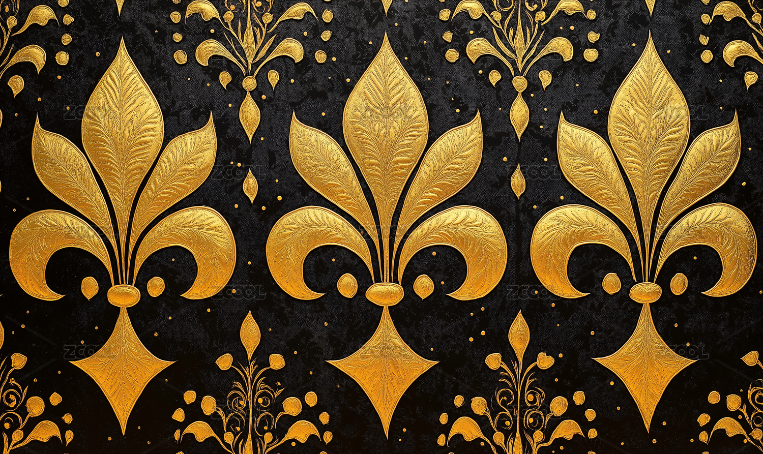 复古抽象纹章纹样设计鸢尾花百合花纹饰