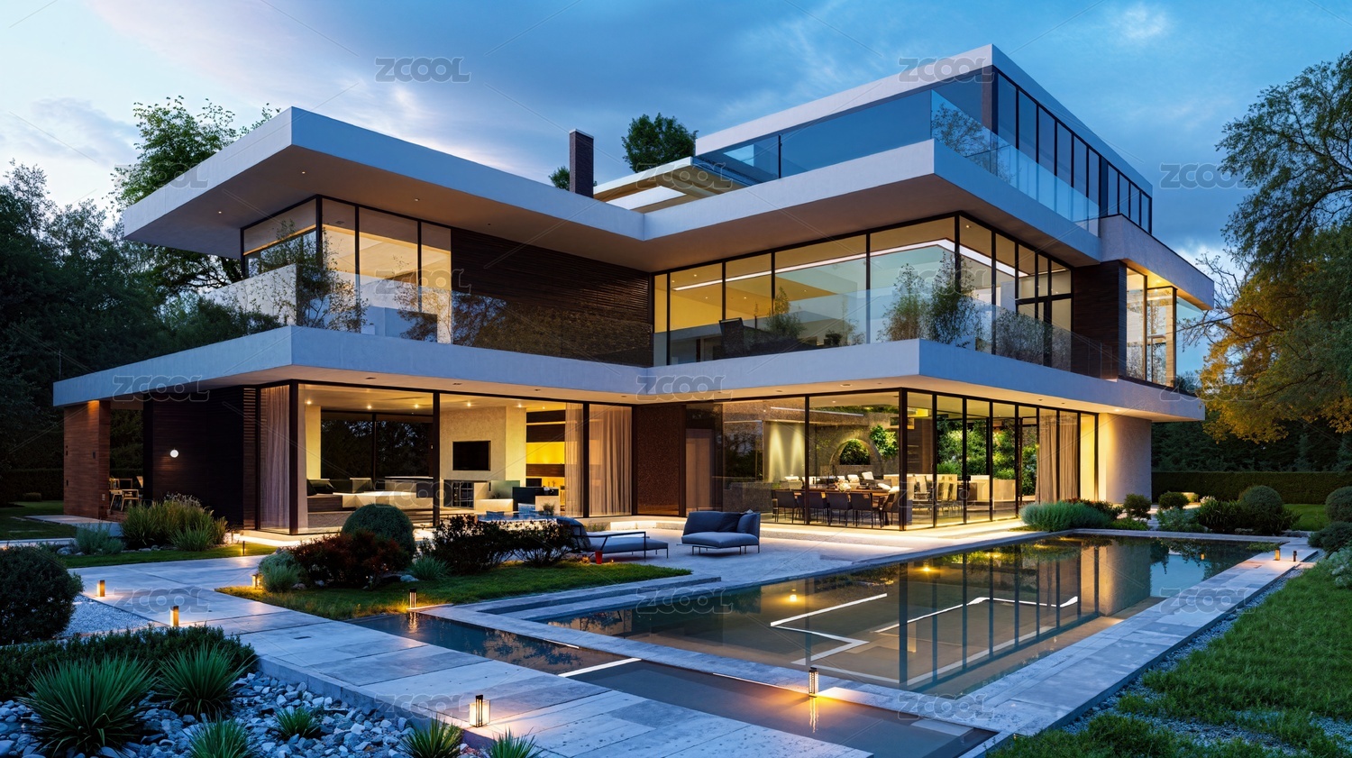 AIGC202401,别墅,建筑,3D,现代,酒店