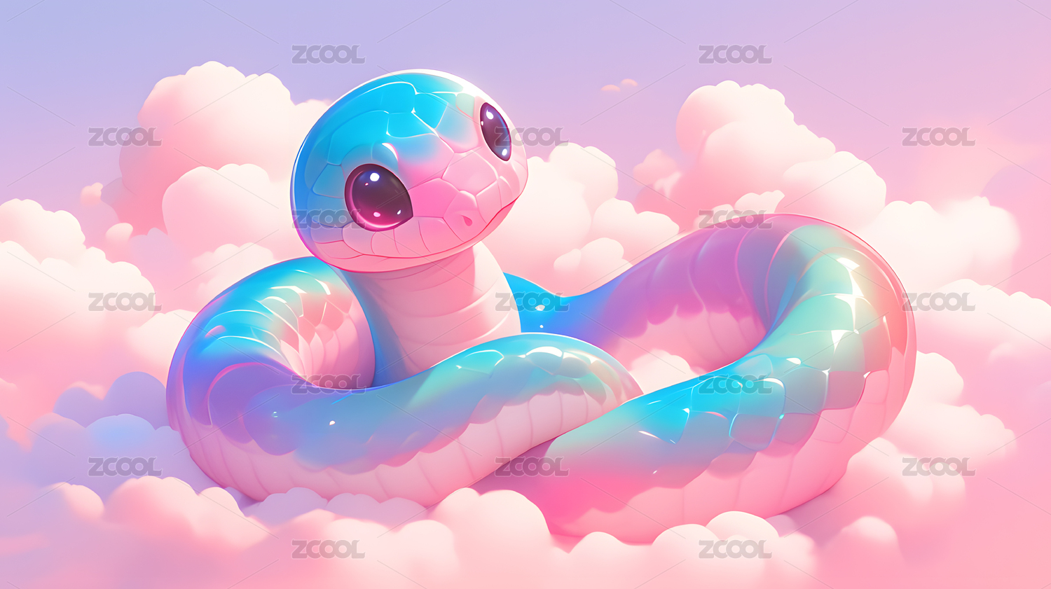 可爱,卡通,3D,生肖蛇,蛇年,插画