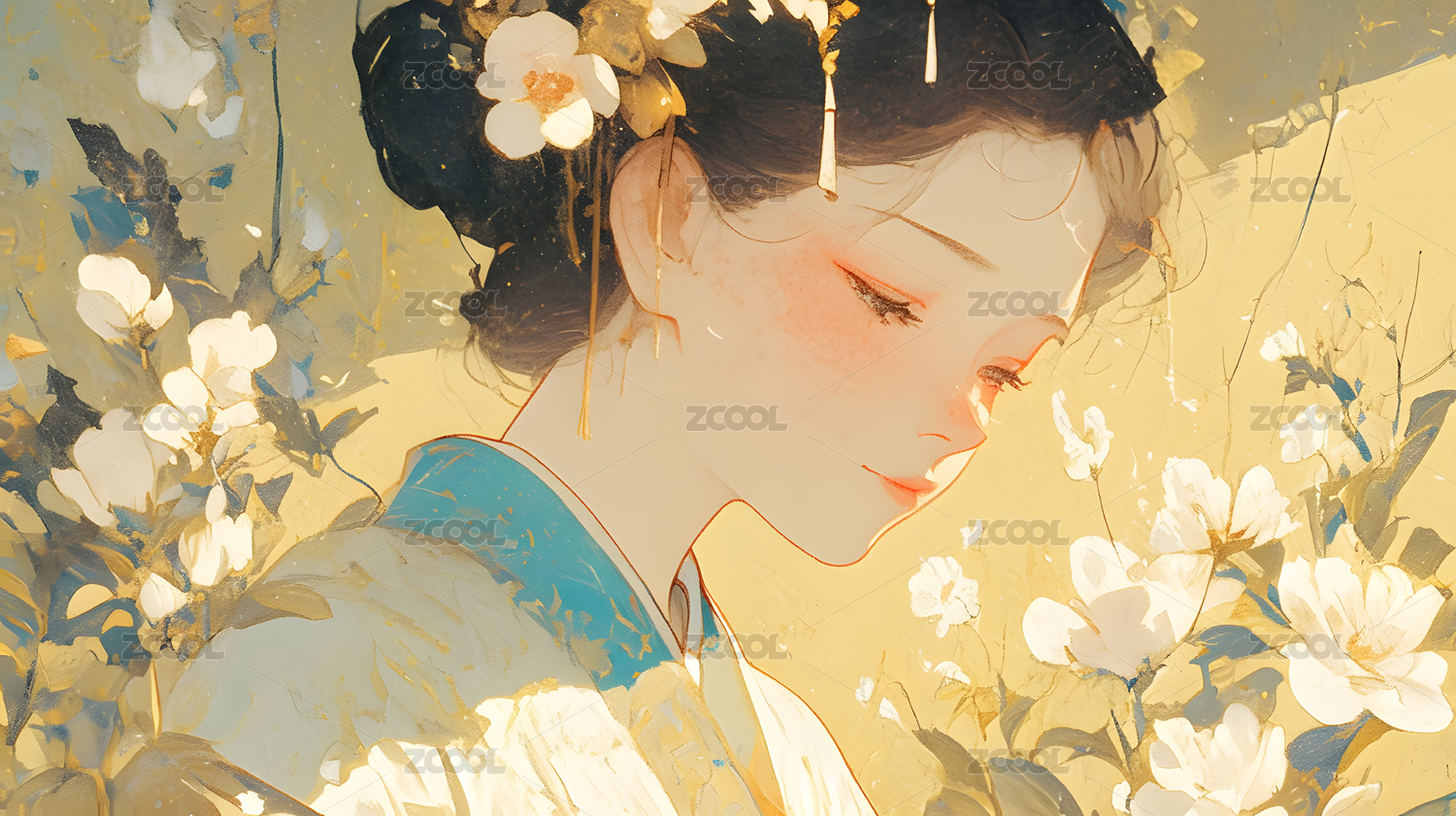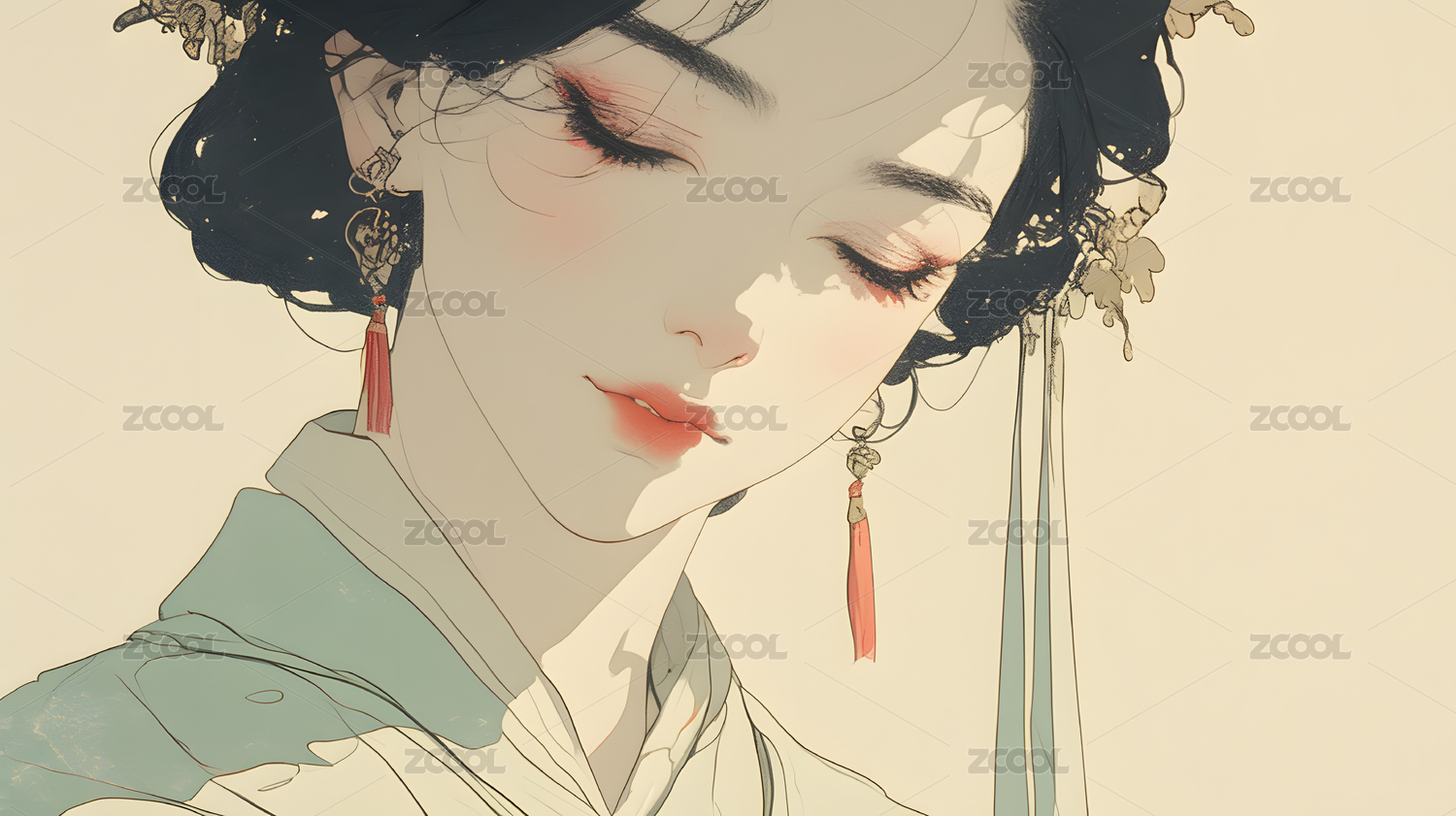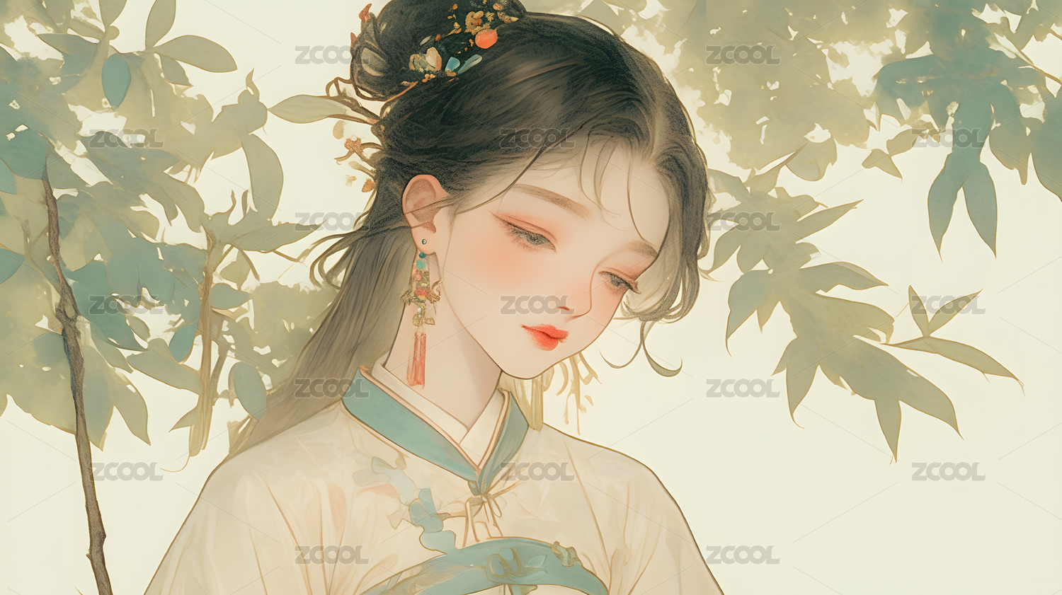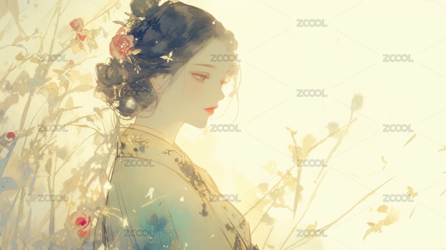 中国风,水墨画,中式,古代,美女,插画,卡通