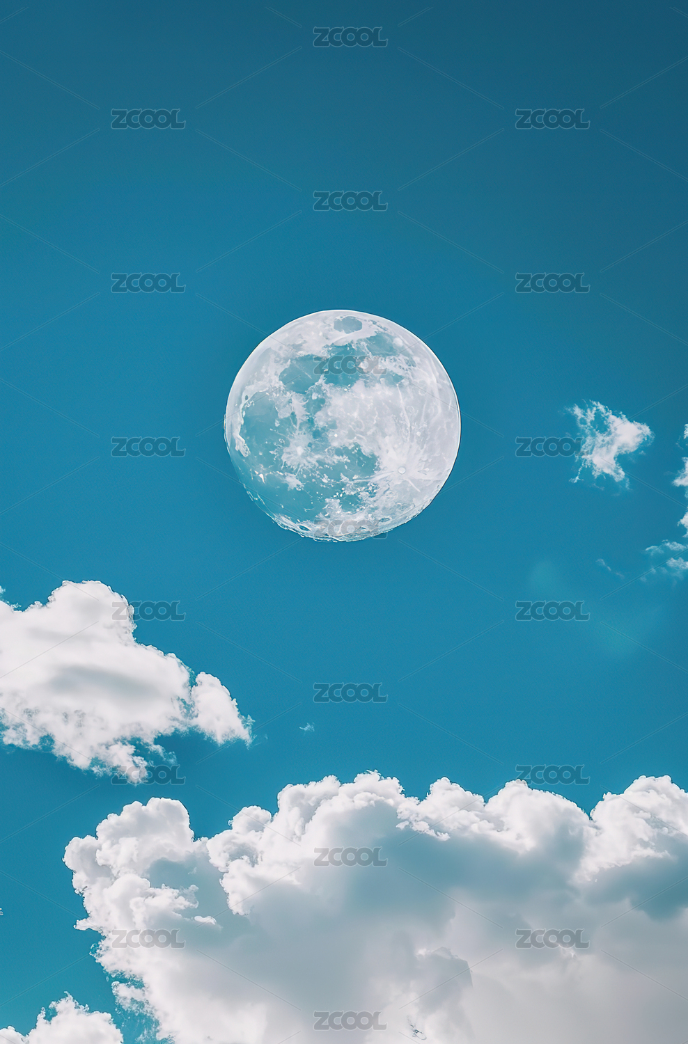 满月高悬于云层之间