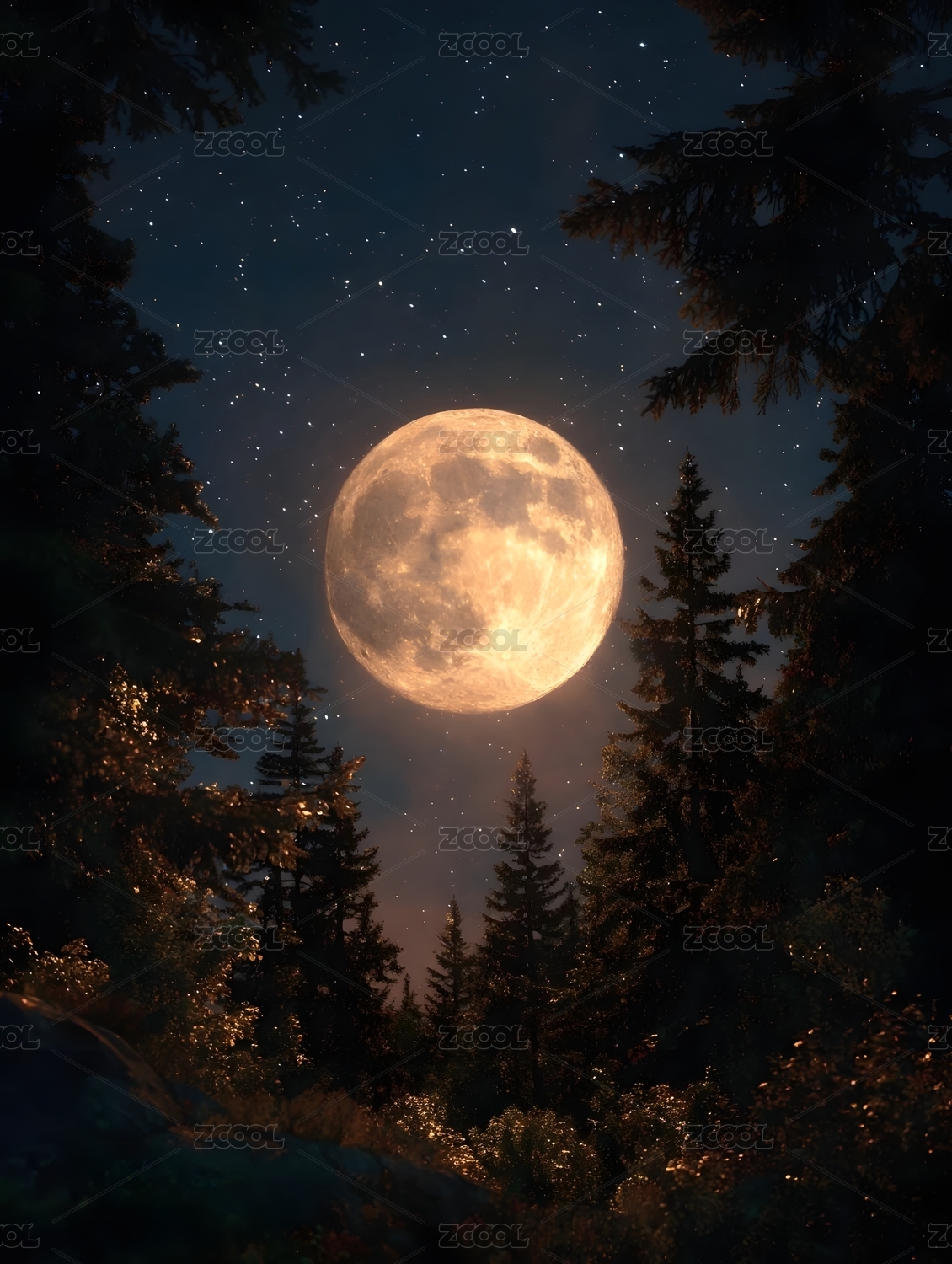 满月森林夜空美景