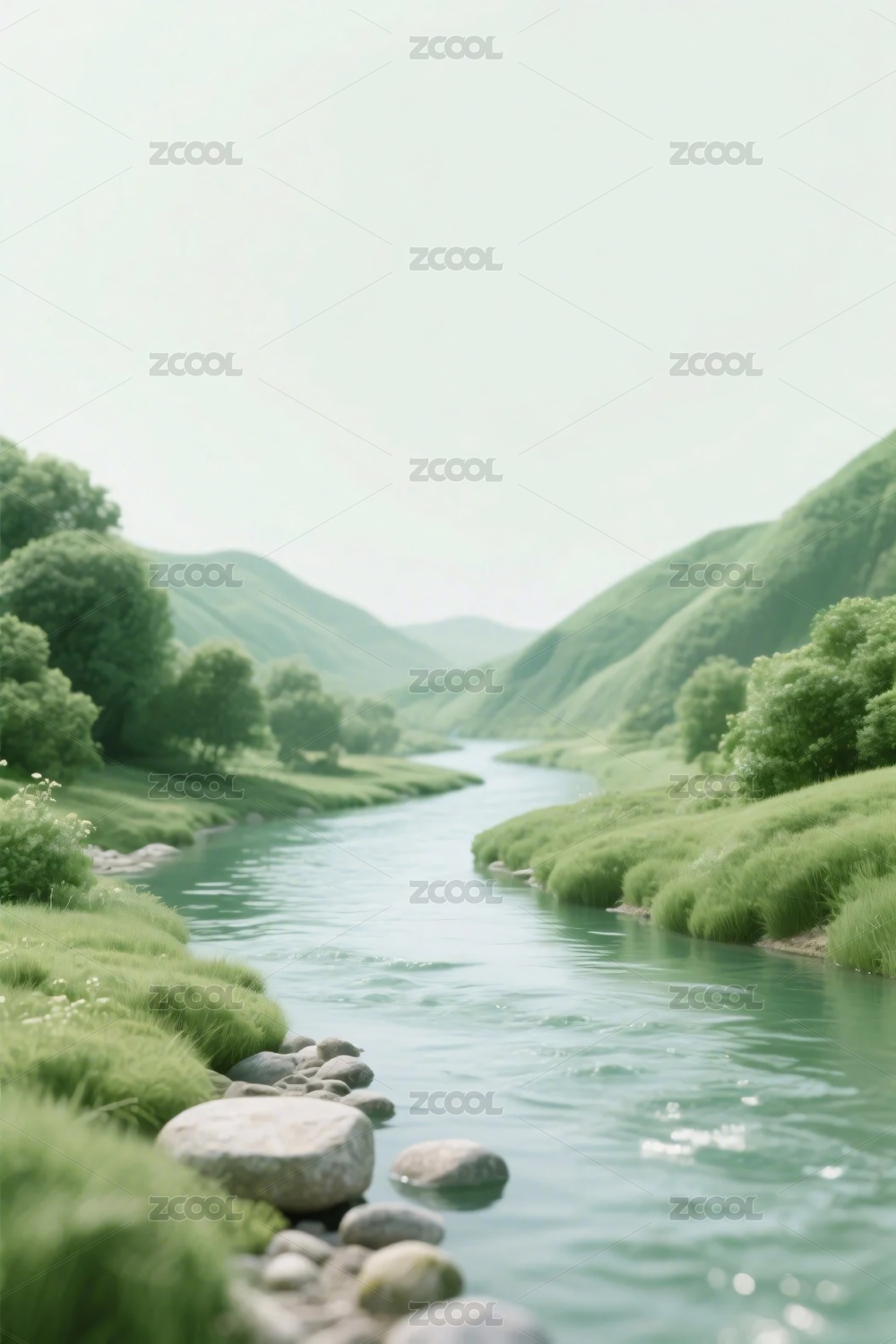 清新溪流与绿苔石