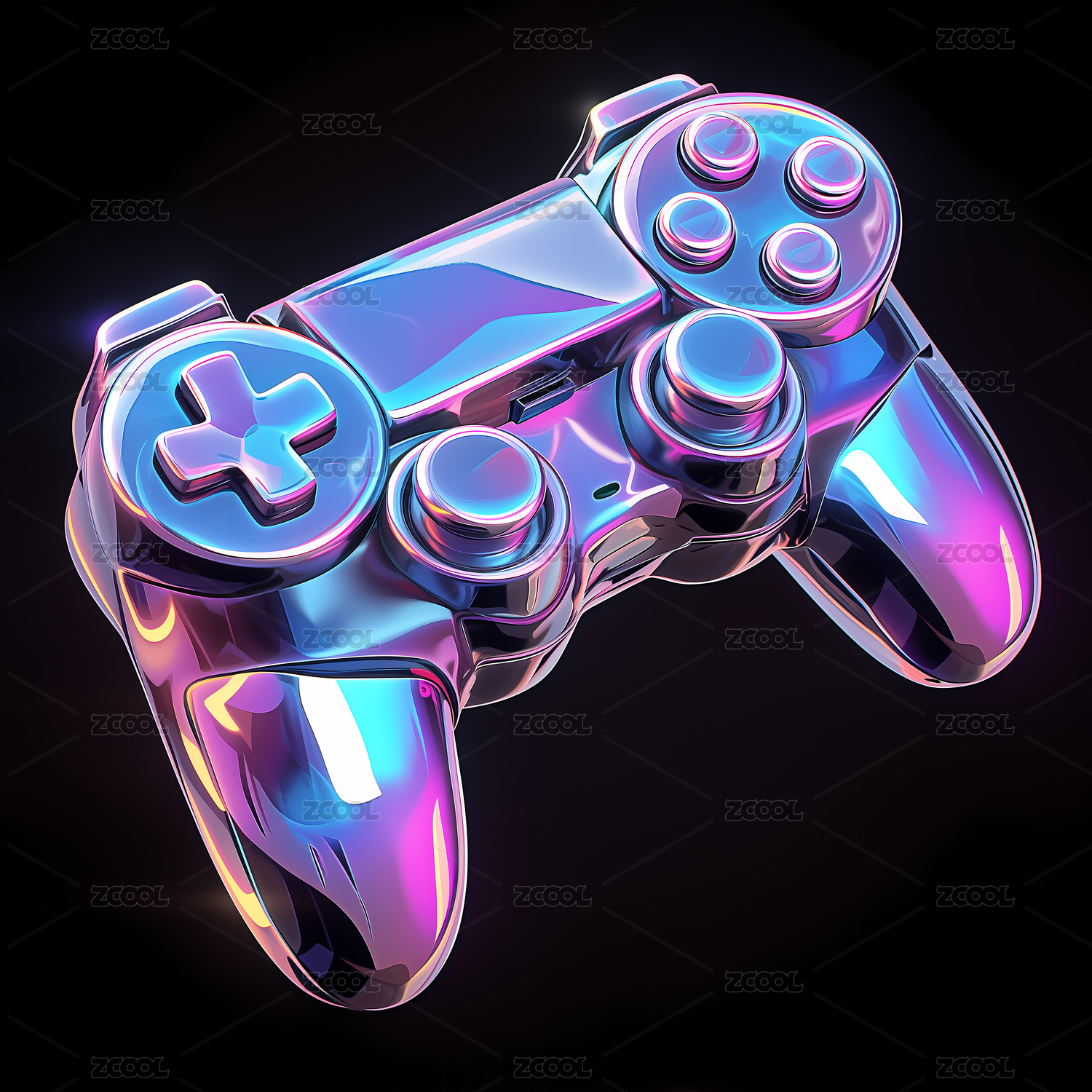 炫彩游戏手柄数码产品全息色彩3D插画