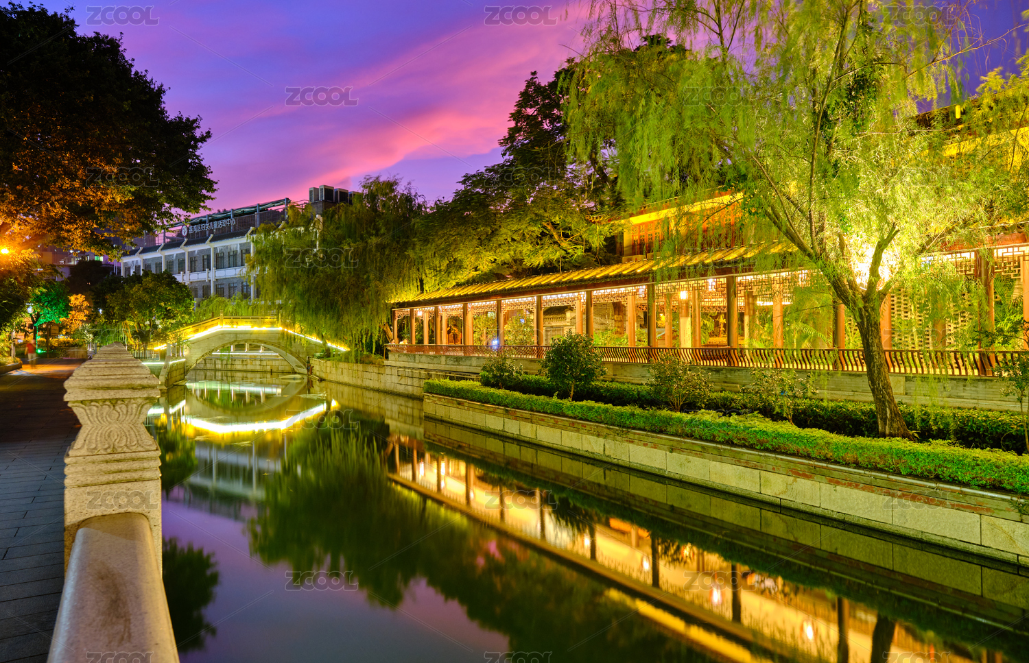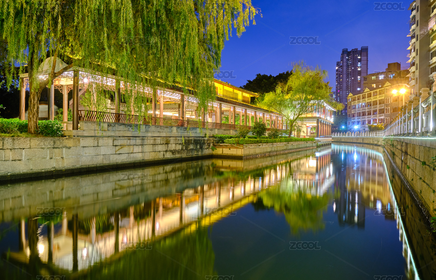 中国广州荔湾区河道夜景灯光