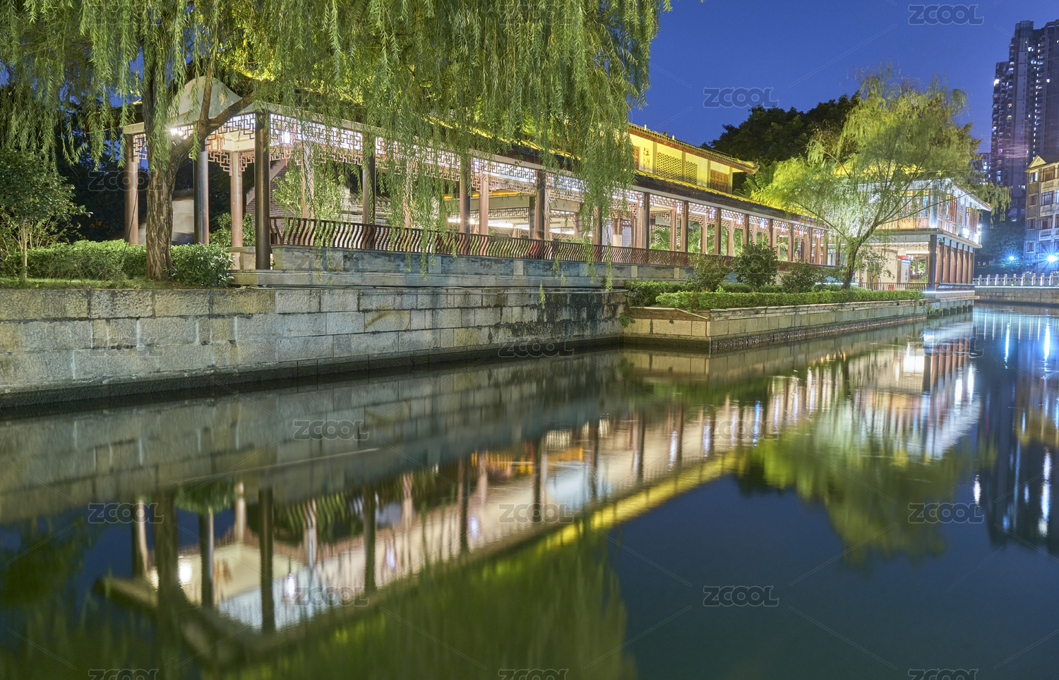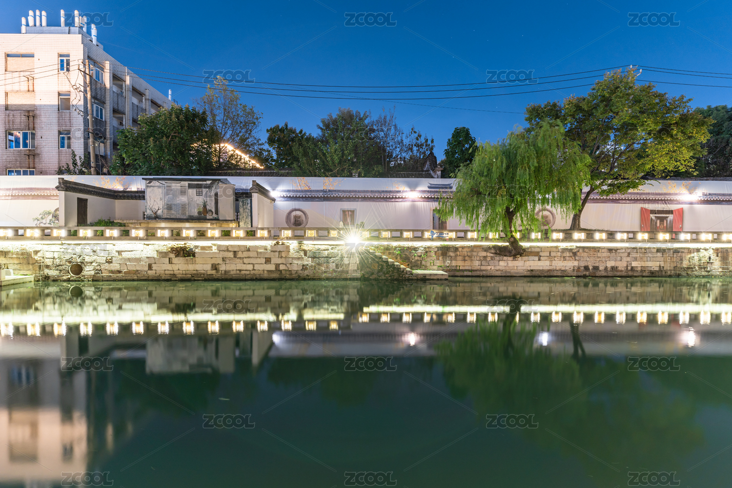 浙江嘉兴月河历史街区水乡夜景