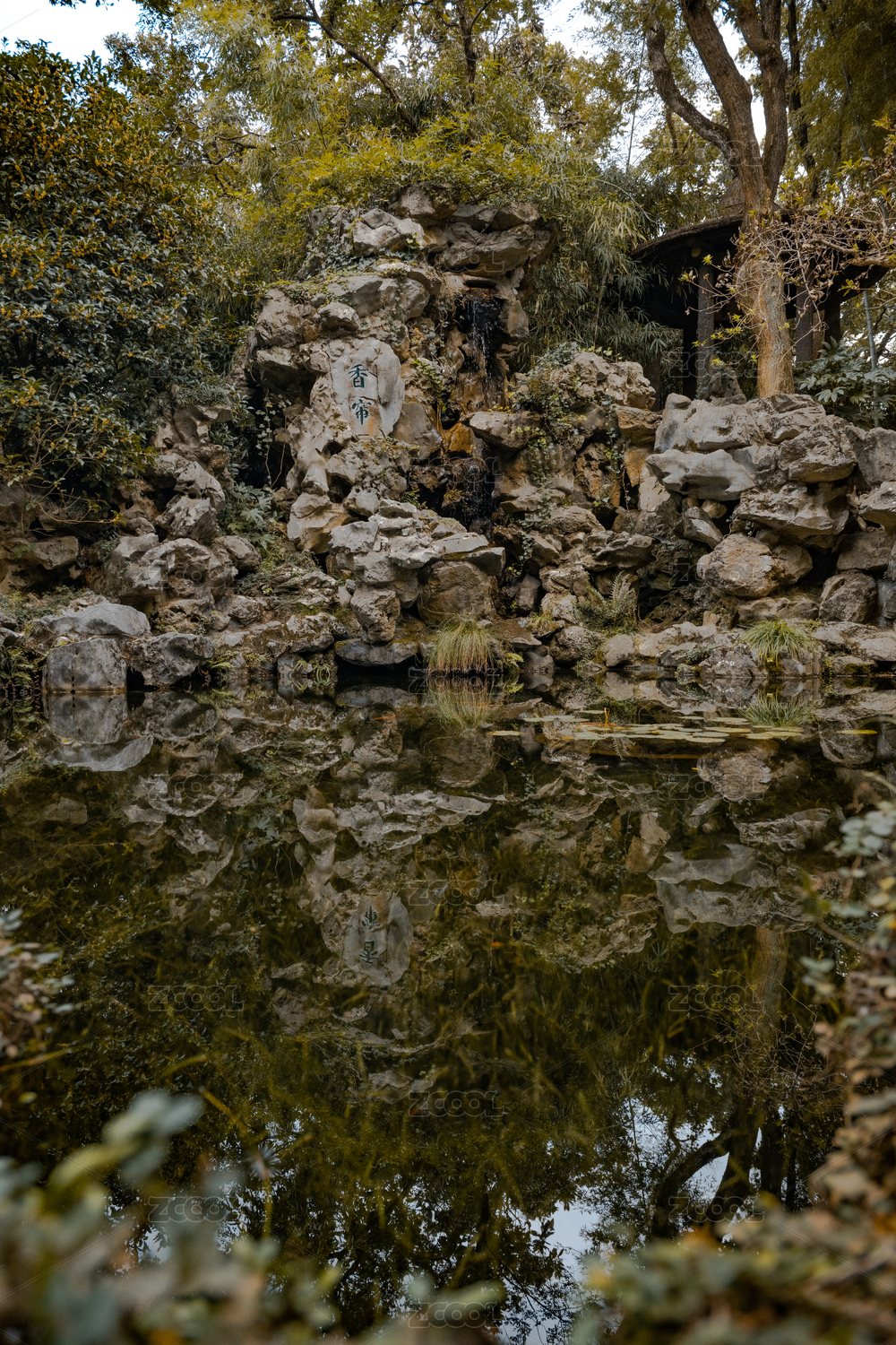 鼋头渚兰居的一座假山倒影
