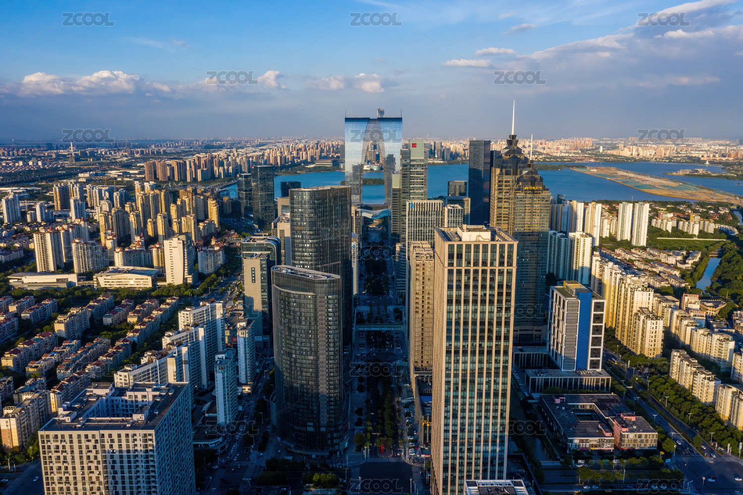 航拍苏州现代城市CBD风光
