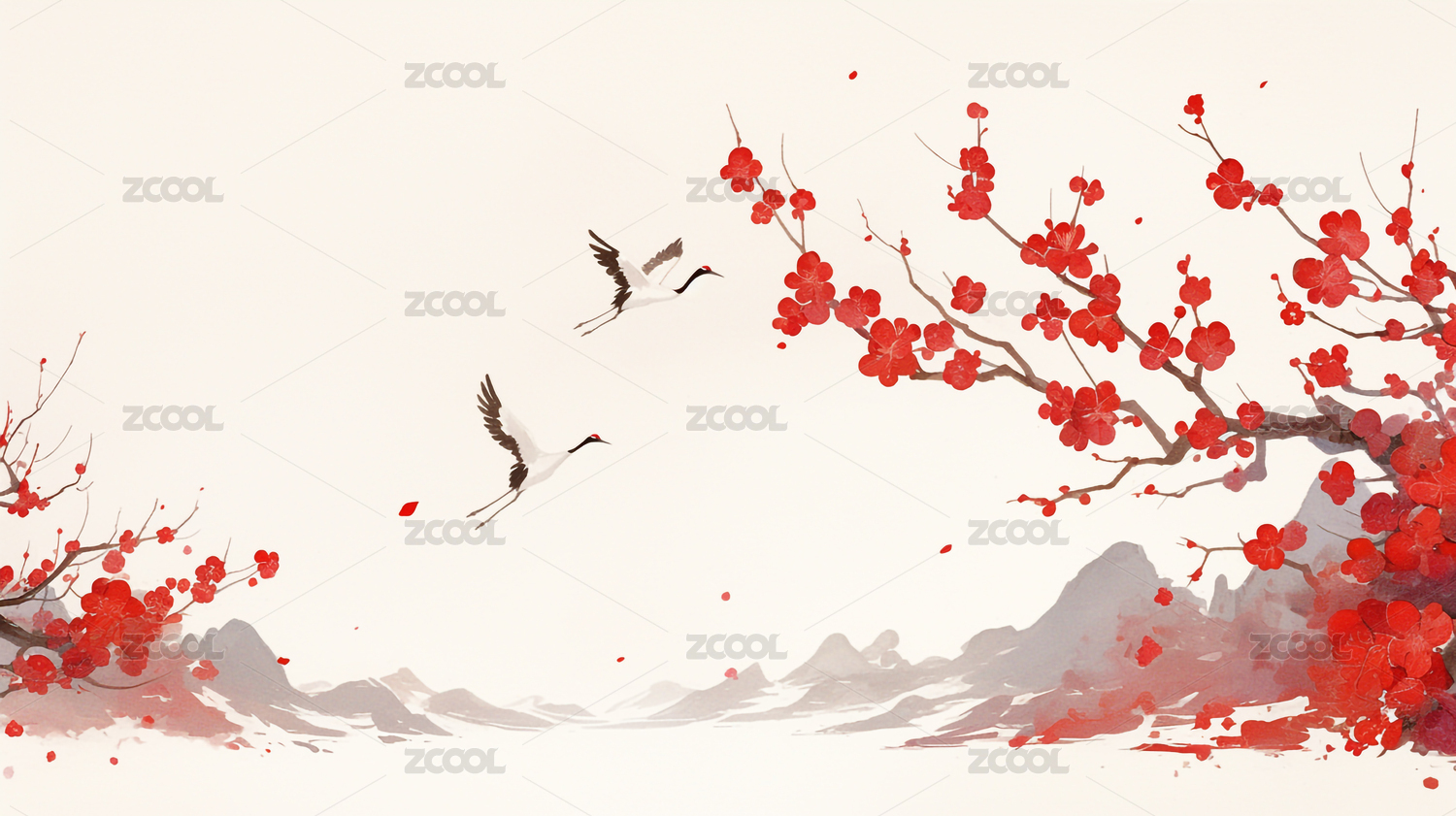 矢量图新中国风梅花群山画