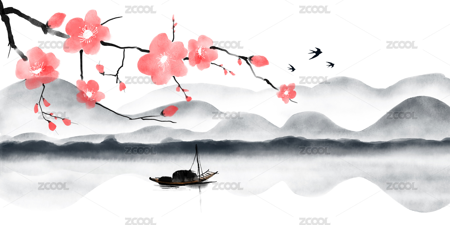 水墨山水,禅意,禅文化,中国风,水墨画,梅花,花鸟画,背景墙,日出,山水画