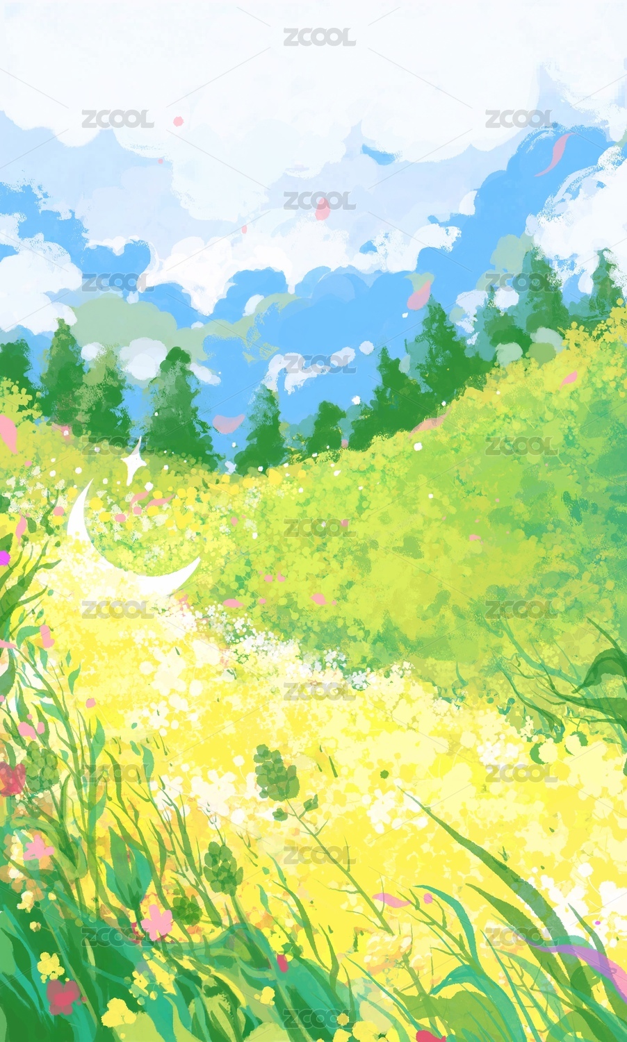 春天,月亮,创意,插画,植物,自然,夏天,户外,背景,风景