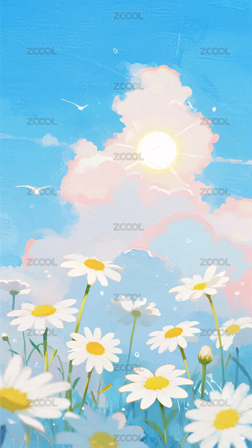 雏菊盛放的晴朗天空景象