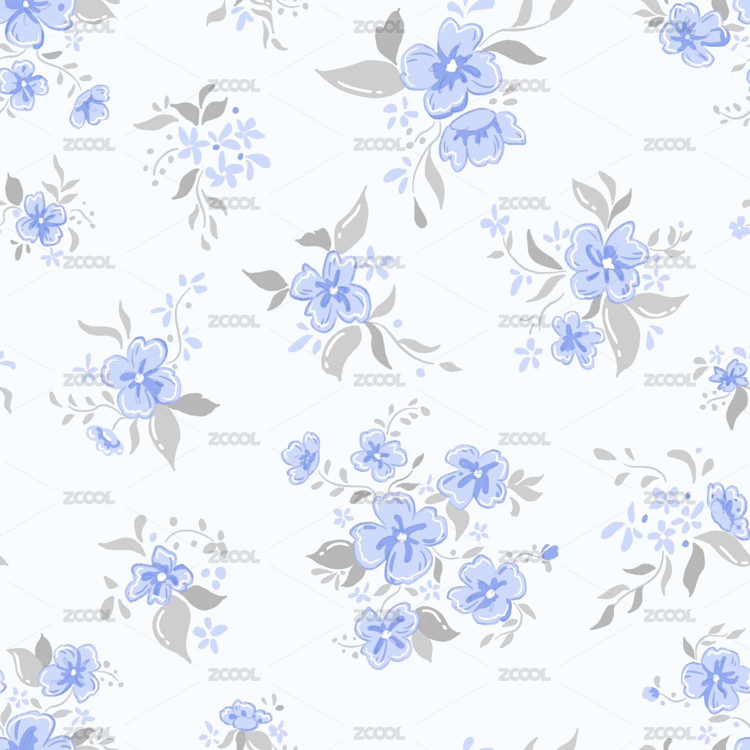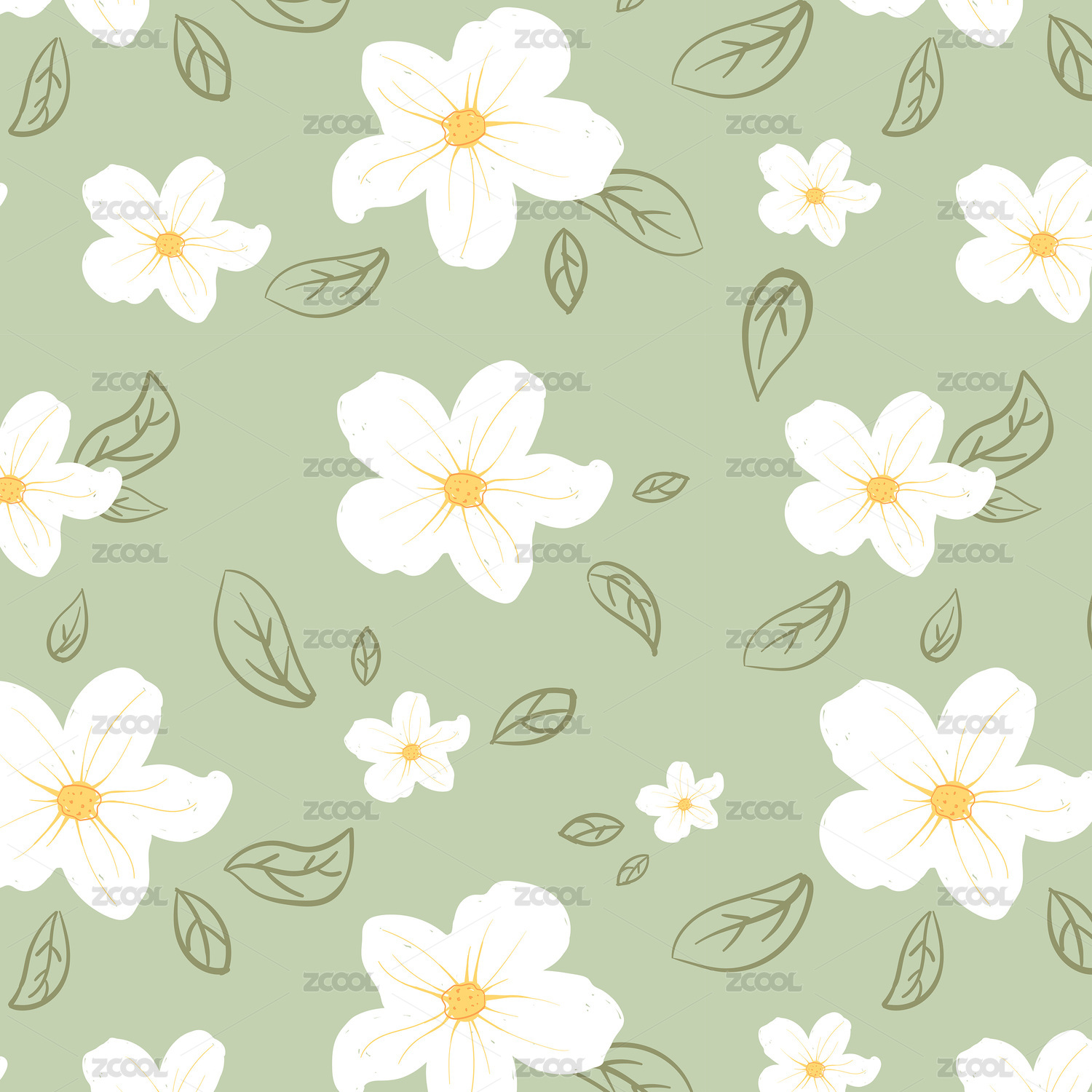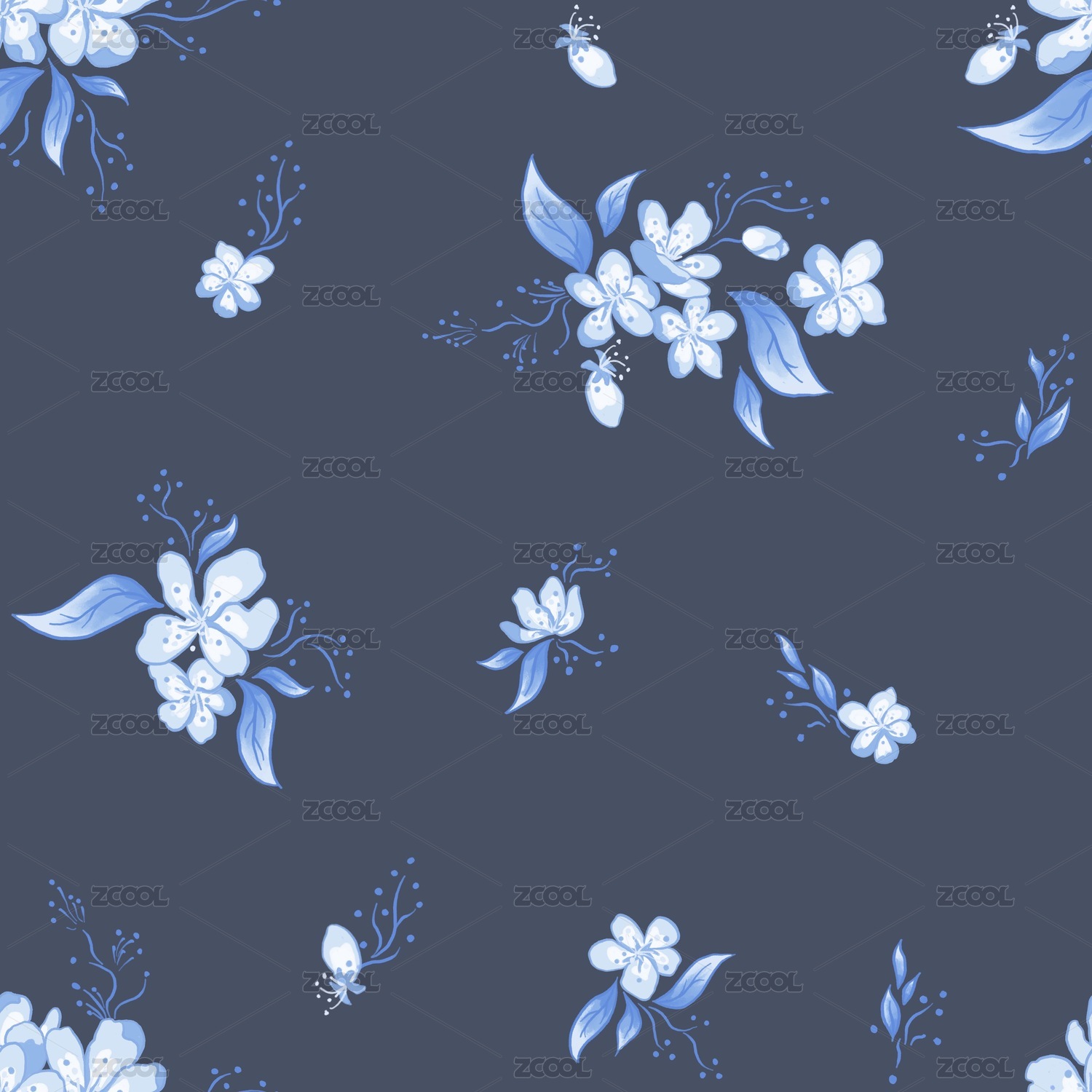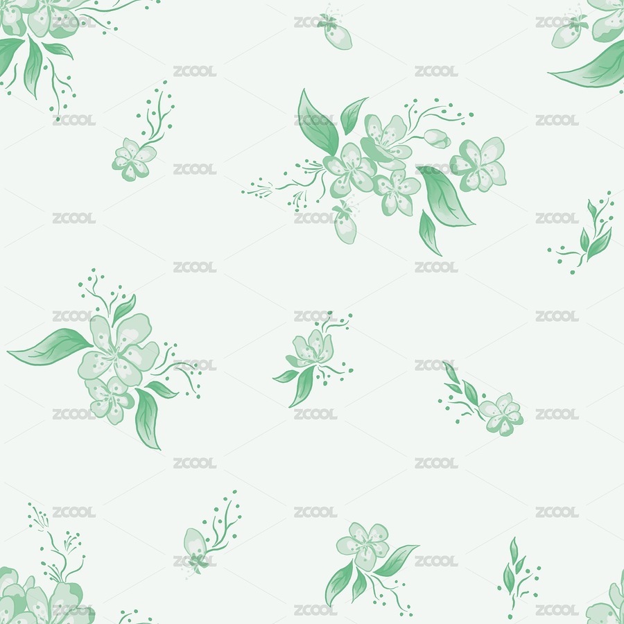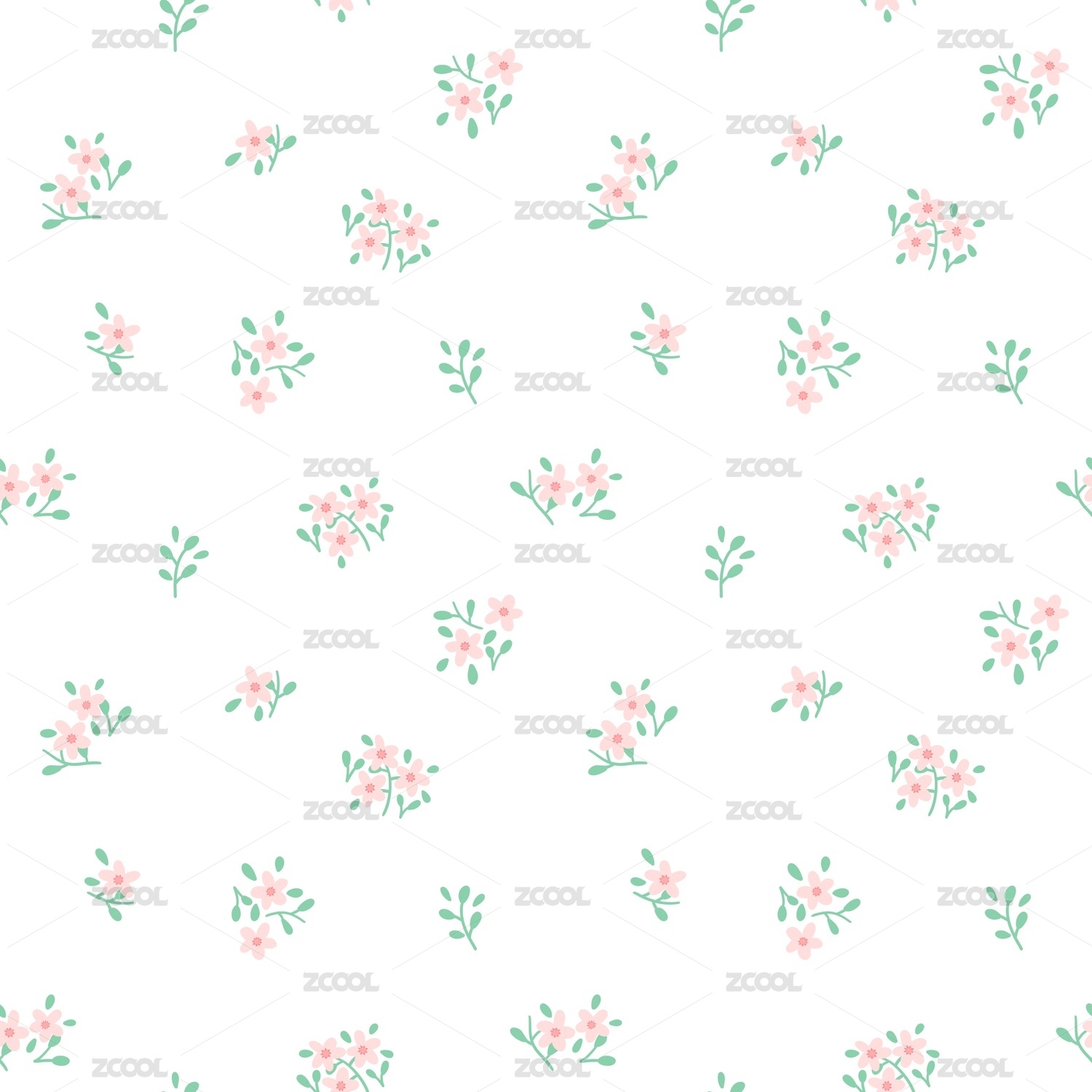 清新粉色桃花花卉手绘无缝连续印花图案-墙