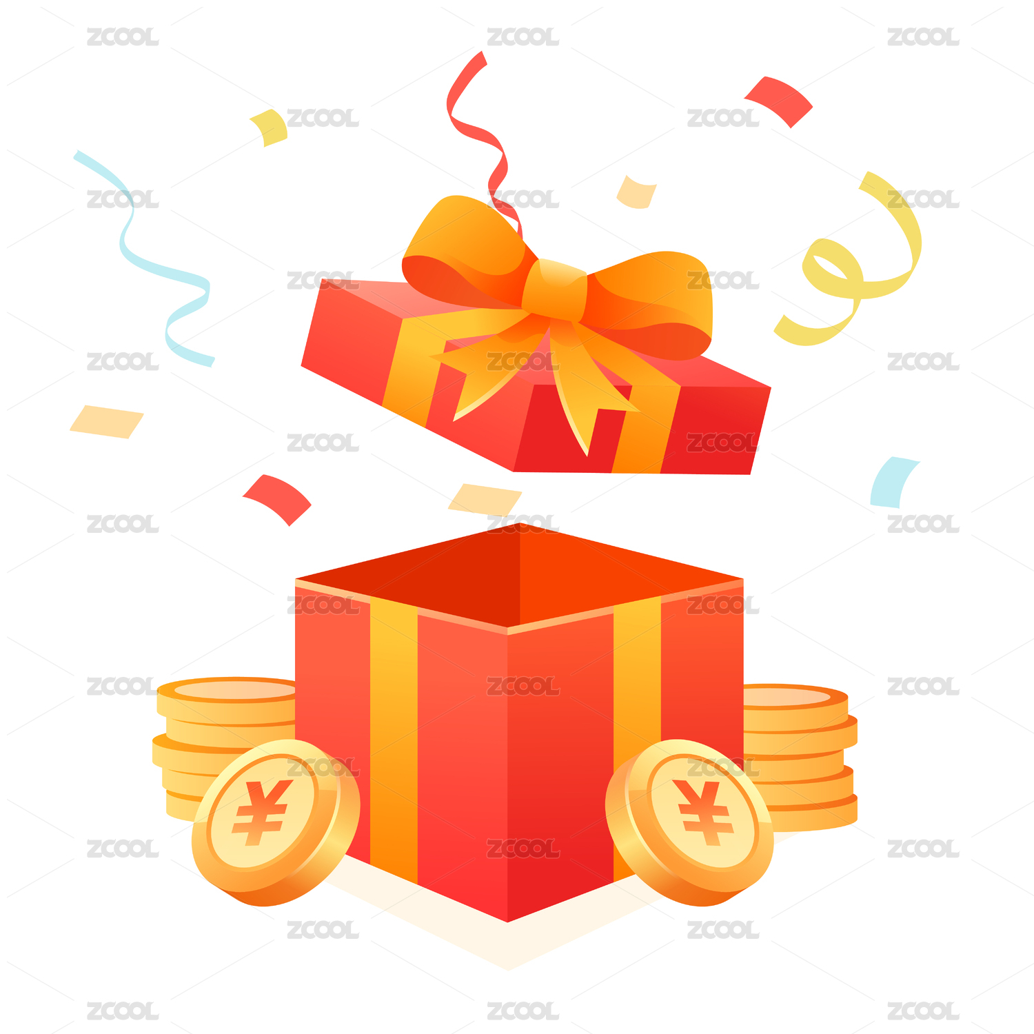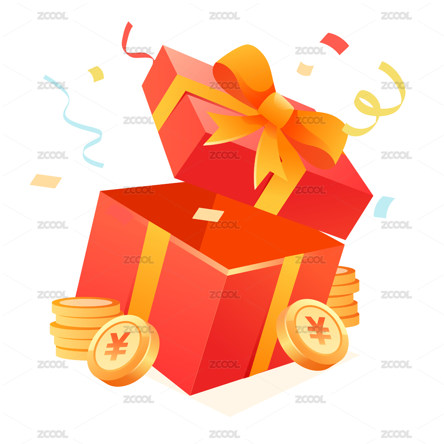 卡通礼盒促销抽奖互联网金融收益理财插画