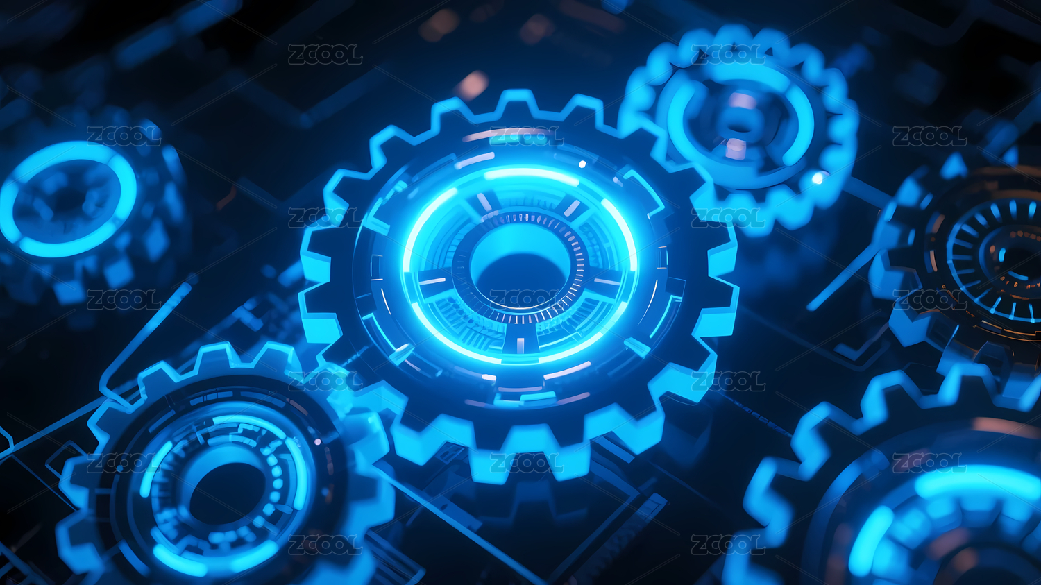蓝色发光齿轮未来视觉