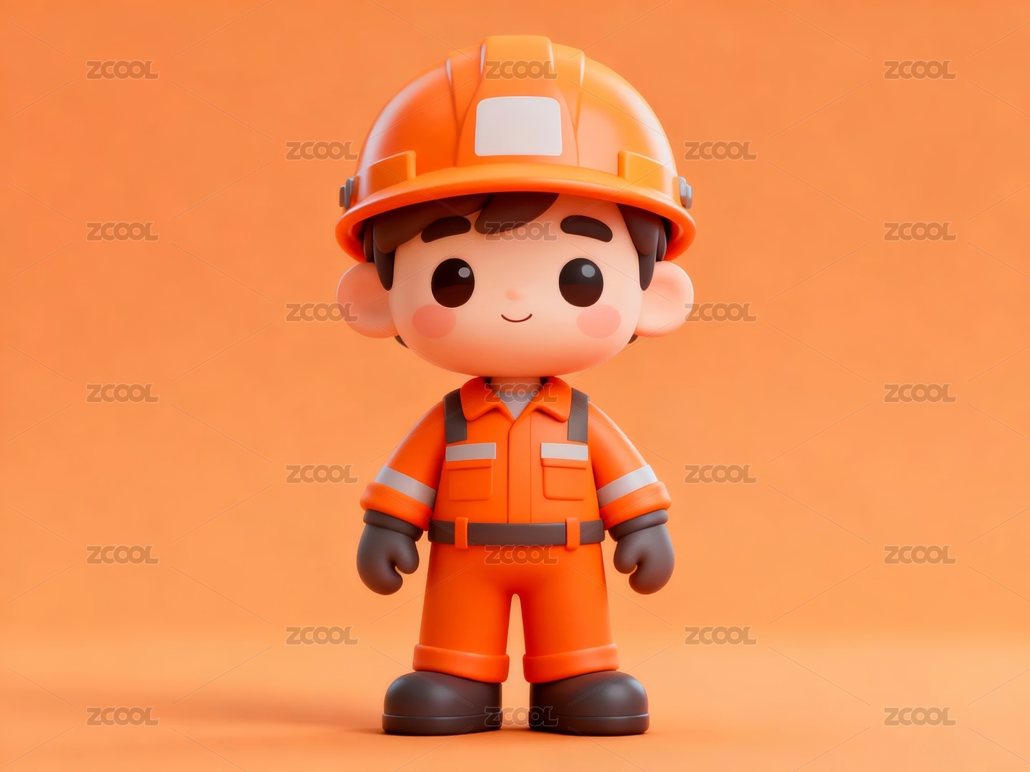 卡通工人玩偶身穿橙色工装