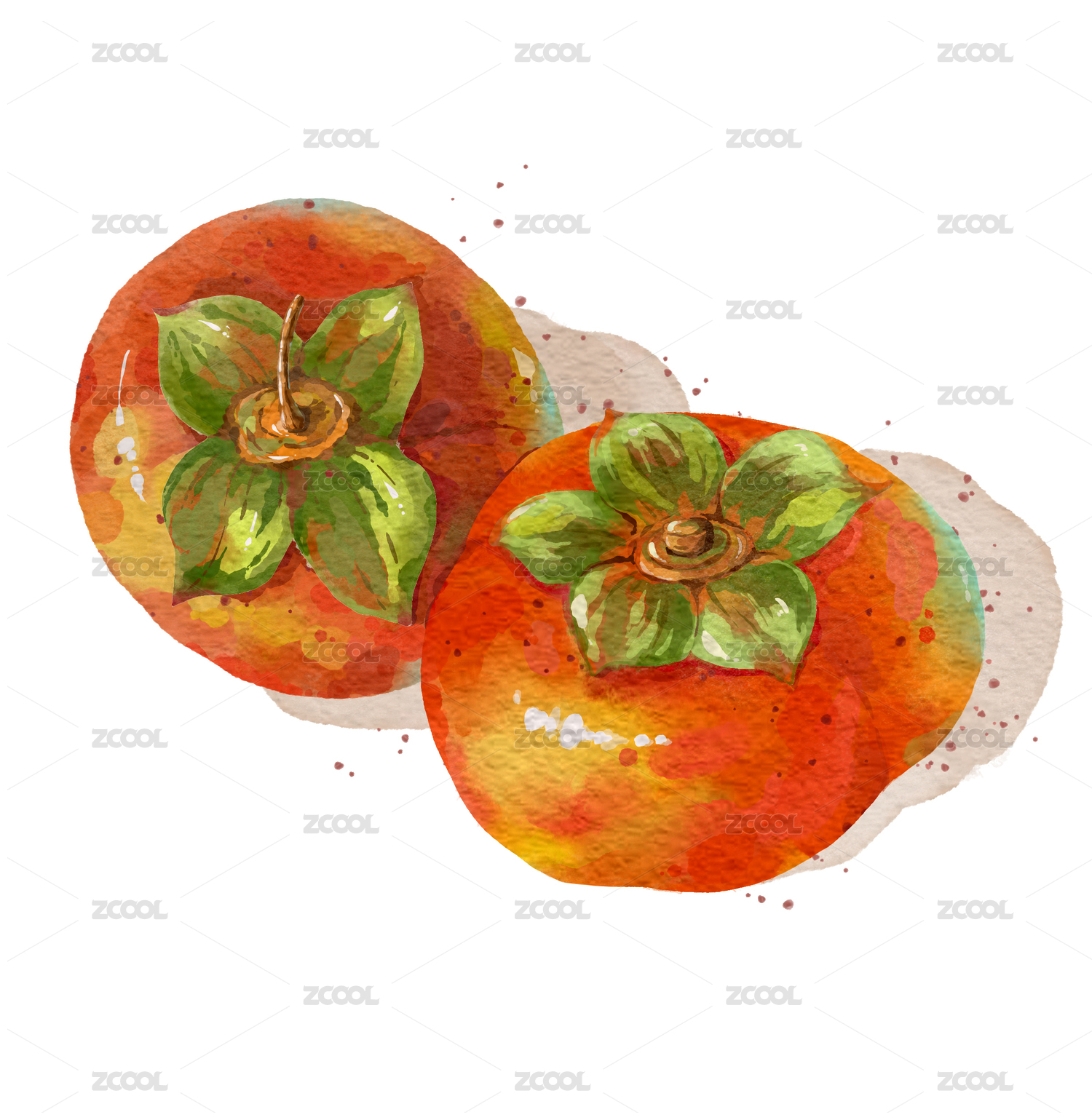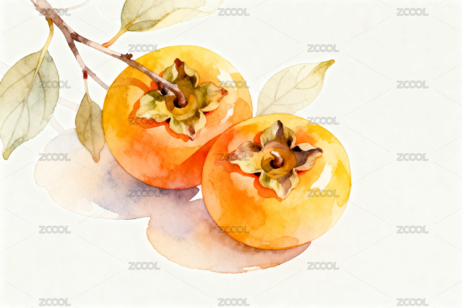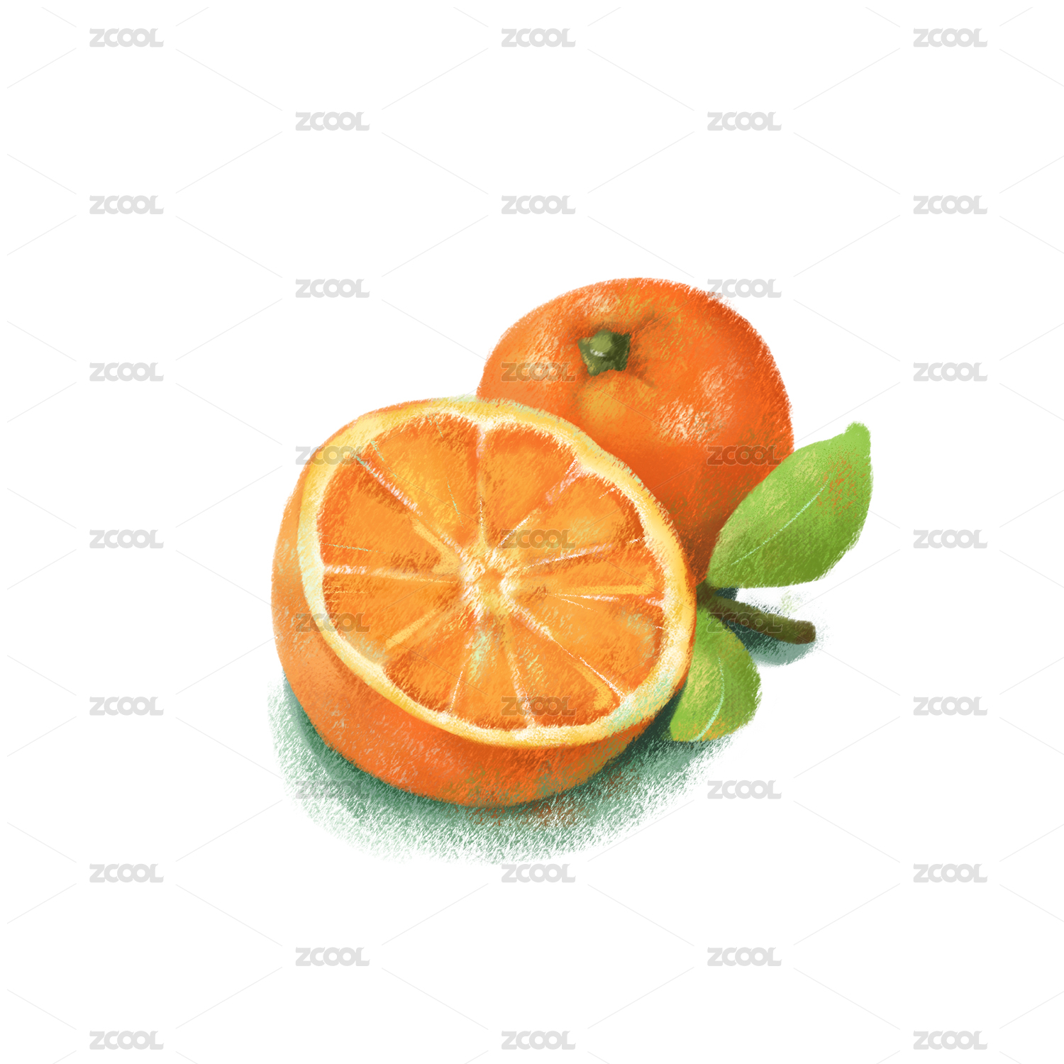 白背景带叶子的成熟的橘子手绘扁平水彩插画