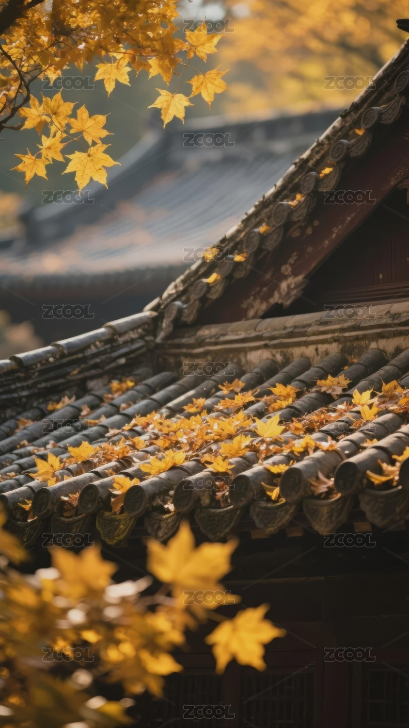 秋日屋顶落叶