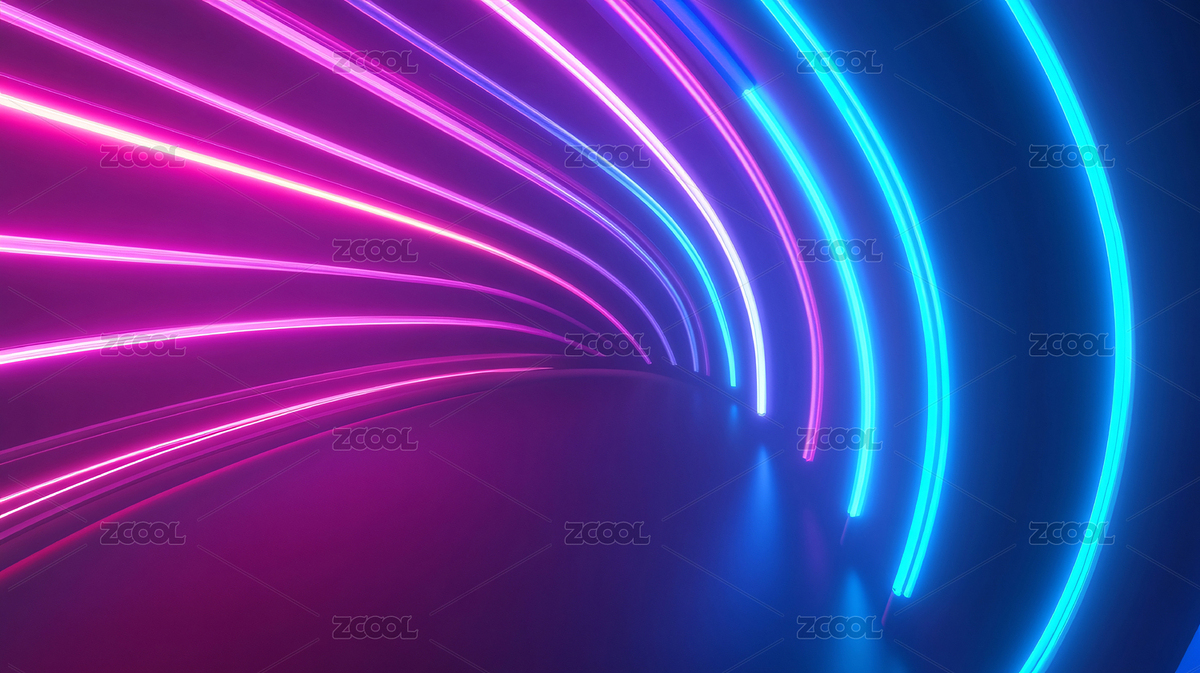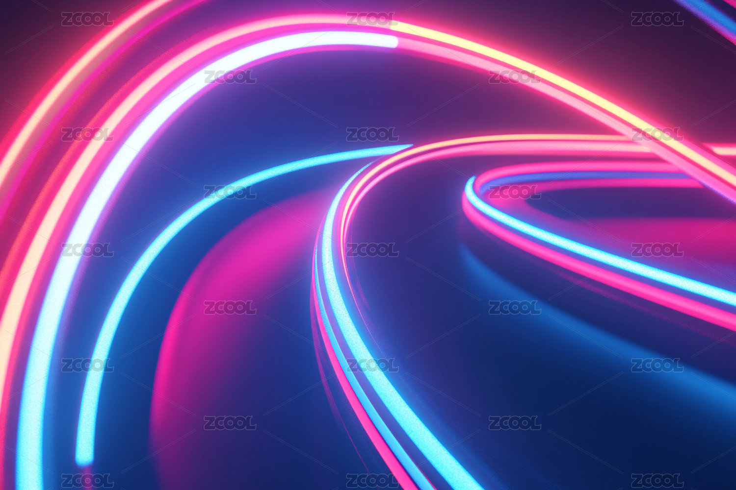 抽象霓虹灯发光几何线条3D渲染商务背景