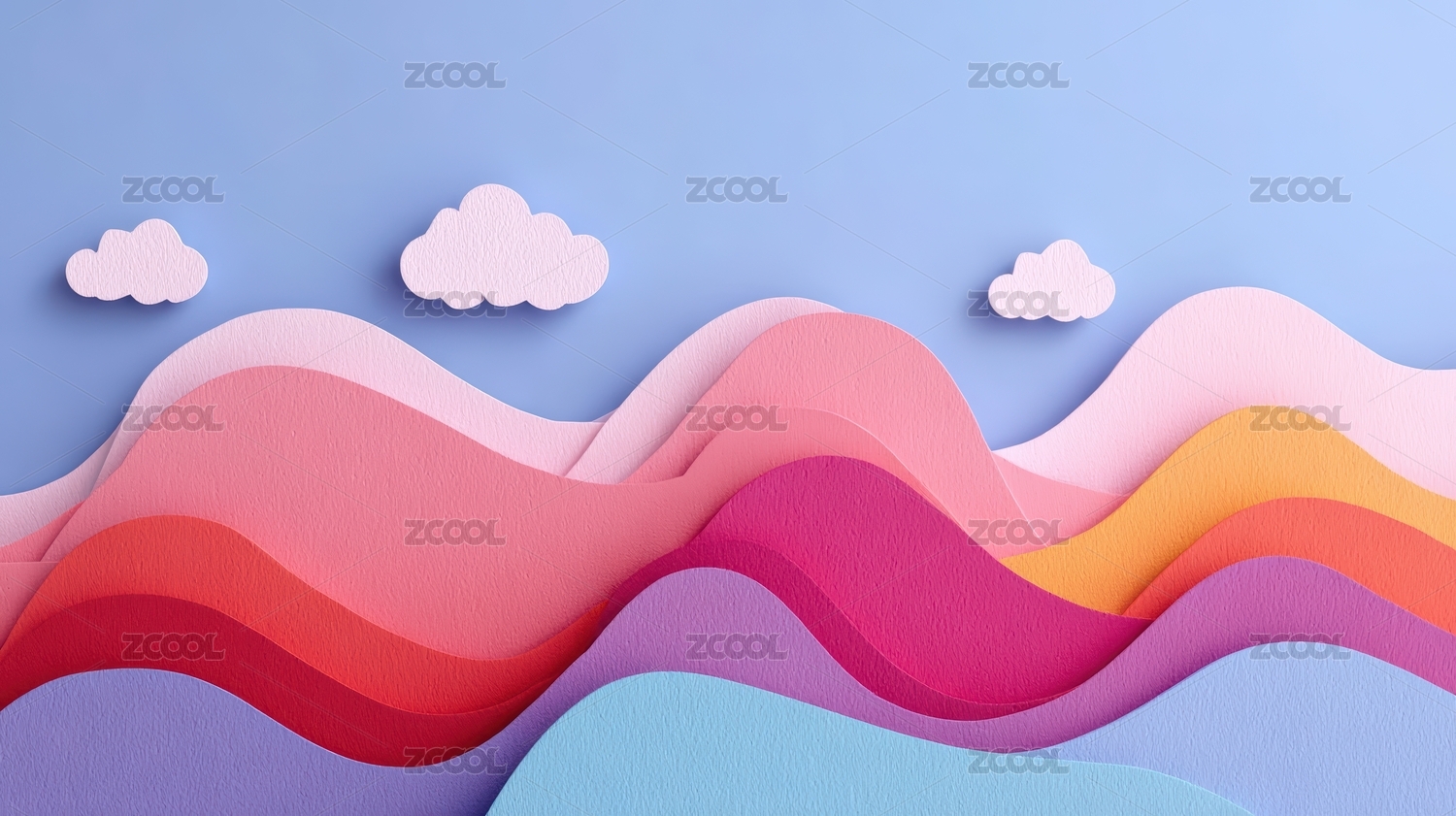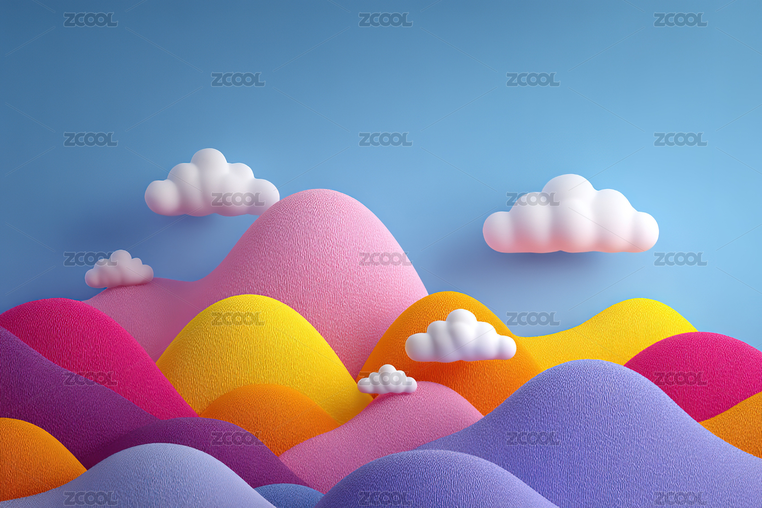 彩色山丘与白云的梦幻场景