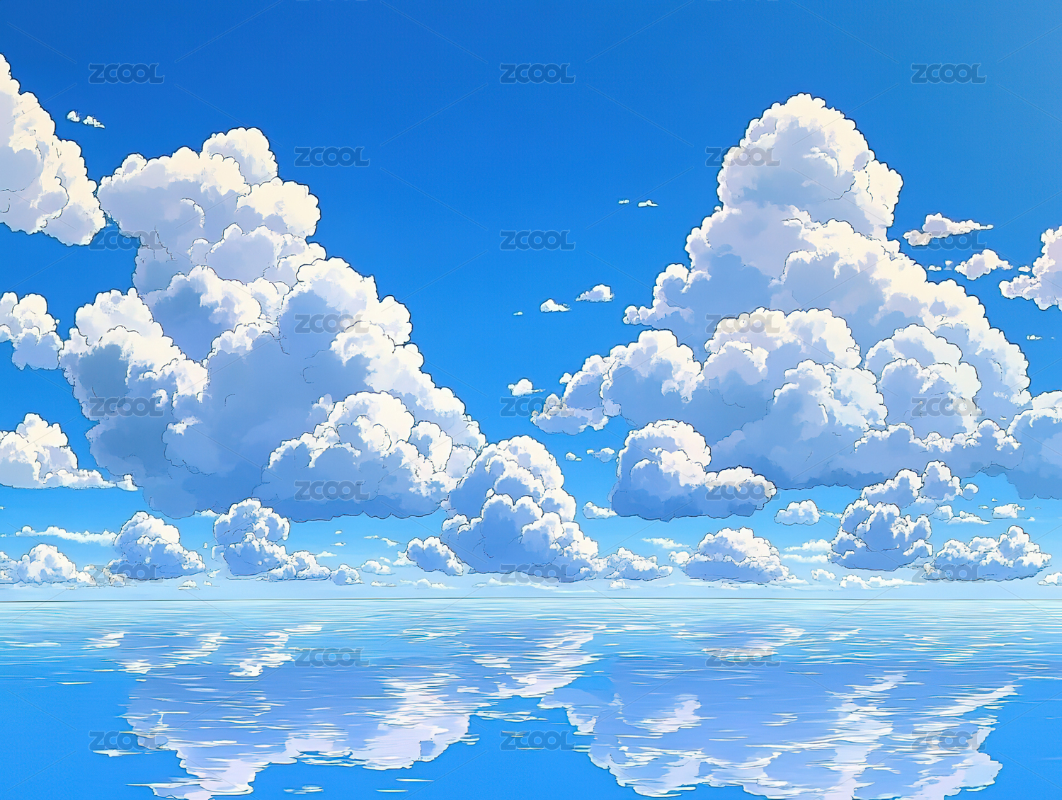 蔚蓝大海与蓬松白云的夏日景象